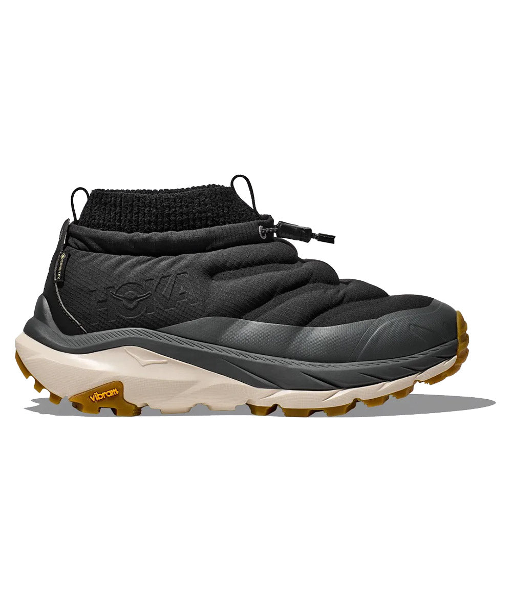 A plush, cold weather ready slip-on. It's like your favorite waterproof hiking shoe had a love child with a cozy sleeping bag—meet the all-new Kaha 2 Frost Moc GTX. We stuffed quilted panels with puffy insulation, added a cozy stretch-fleece top collar, then combined it with our plush Kaha 2 bottom and trail-ready Vibram® Megagrip rubber to make the après-adventure slip-on style of your dreams. The quick-lace toggle makes adjustments with gloves effortless, while a GORE-TEX membrane and water-repellent finish keep feet dry and toasty—the only thing missing is the hot chocolate.