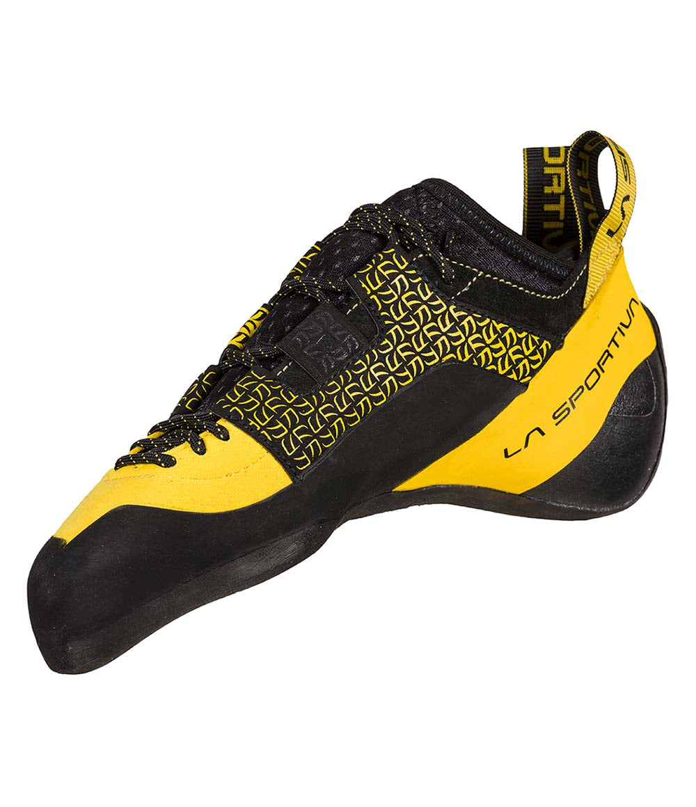 The Katana Lace, despite its downturn shape, is a comfortable all-day climbing workhorse that performs well on slabs and can easily twist into thin cracks but excels outside on steep single or multi-pitch routes. The slightly downturned toe and subtle asymmetry ensures you can hook into pockets or exploit the tiniest edges while providing unrivaled comfort for the level that it performs at. The Katana Lace is a veritable edging machine now available in Men’s and Women’s styles.