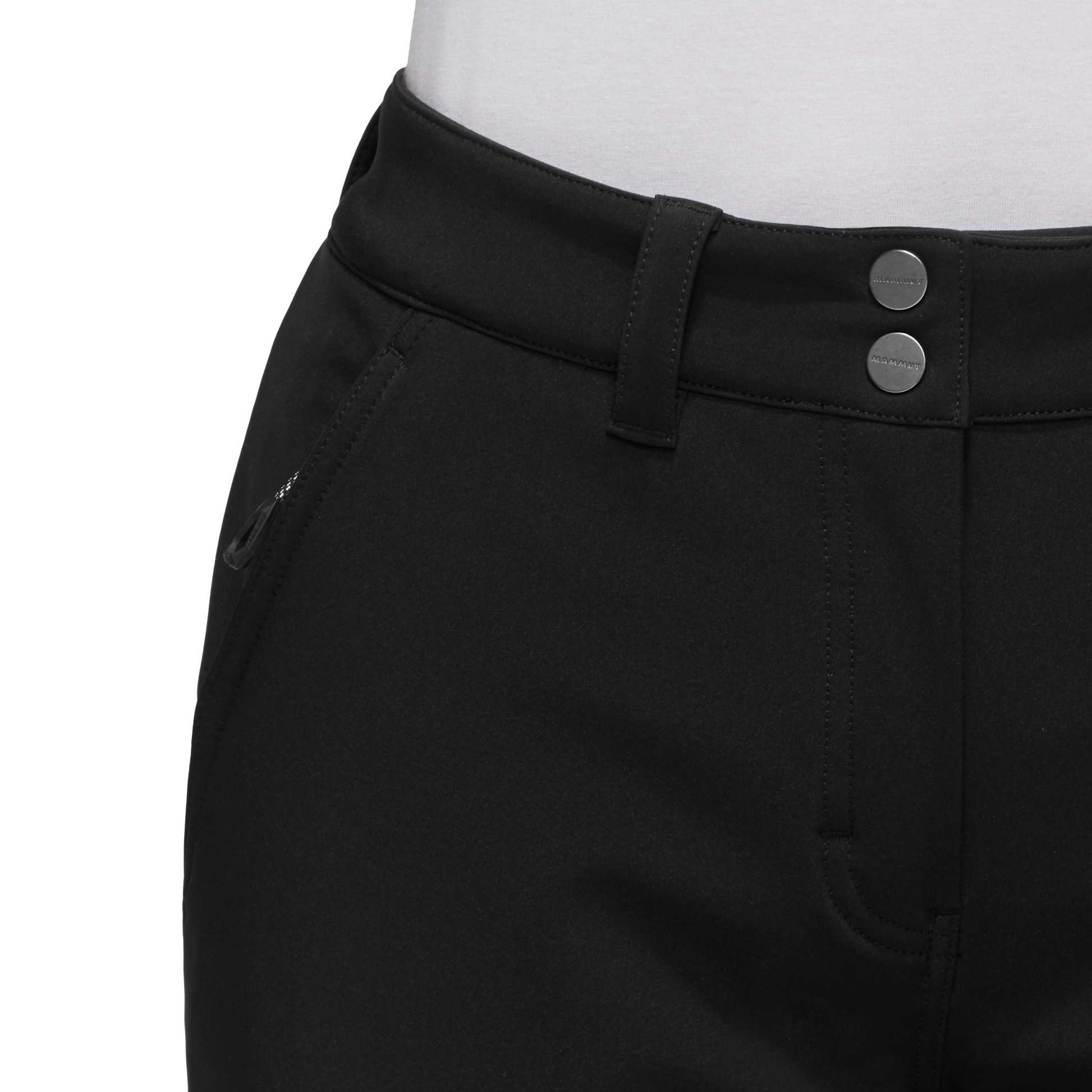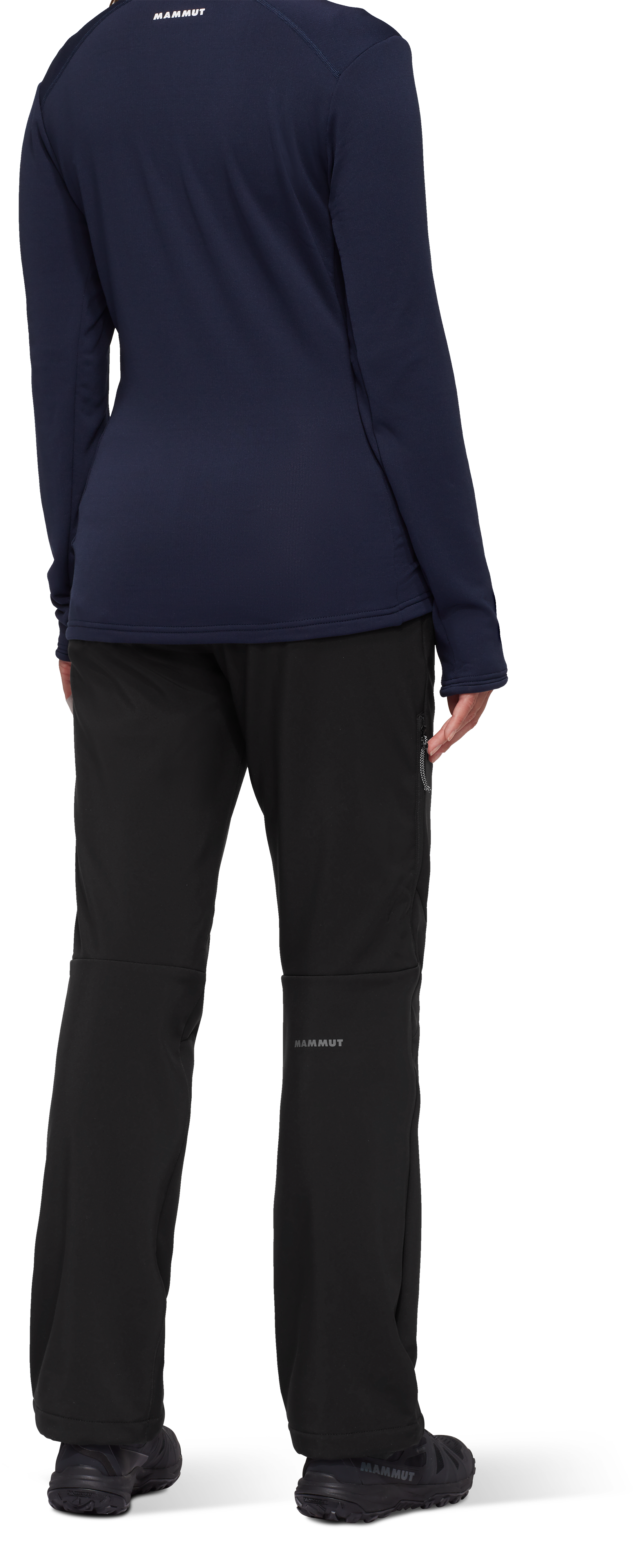 Let hikes on cold winter days become an absolute joy with these warm soft shell pants. Almost completely recycled, with 3-layer soft shell and soft fleece lining, these hiking pants not only keep out the wet, but also protect you from the cold. For temperature regulation after strenuous climbs, there are zippers on the sides to allow ventilation. Stashing your essentials in the secured pockets and adjusting the drawstring at the cuff – you're ready for the snow with the Runbold Winter SO Pants.