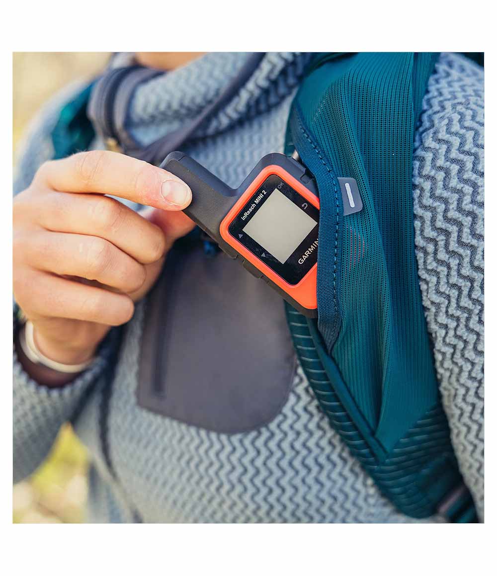 - On-The-Go shoulder strap pocket designed for the Garmin® inReach®, your favorite trail snack, or sunglasses.