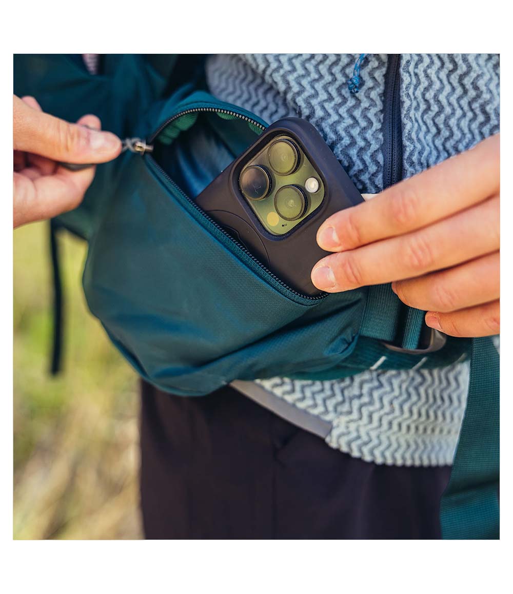 On-the-Go Pocket — On-The-Go shoulder strap pocket designed for the Garmin® inReach®, your favorite trail snack, or sunglasses.