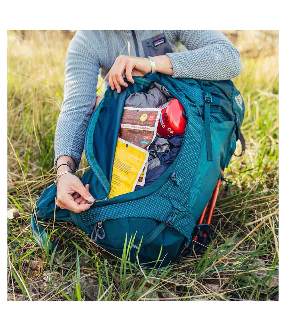 The Maven 58 was built light with superior comfort for goal-oriented thru-hikers. Sized and fitted for women, the Maven 58 features the FreeFloat hip belt that flexes with you independent of the pack frame, so you use less energy while you hike. The Air-Cushion Mesh back panel is made of over 90% air, keeping you cool while you grind it out. Keep your essentials close with the on-the-go pocket, built for your Garmin inReach, sunglasses and snacks. A full length side-loading zipper keeps you organized while the zippered bottom sleeping bag compartment with removable divider keeps everything where it should be.