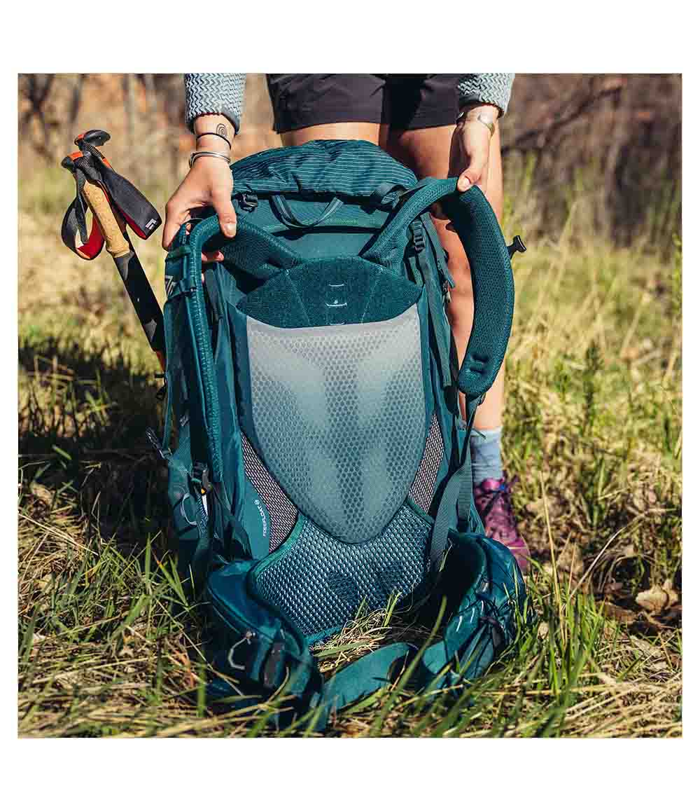 FreeFloat Hybrid Suspension — Hybrid suspension featuring Gregory's FreeFloat dynamic hipbelt and AirCushion mesh backpanel.