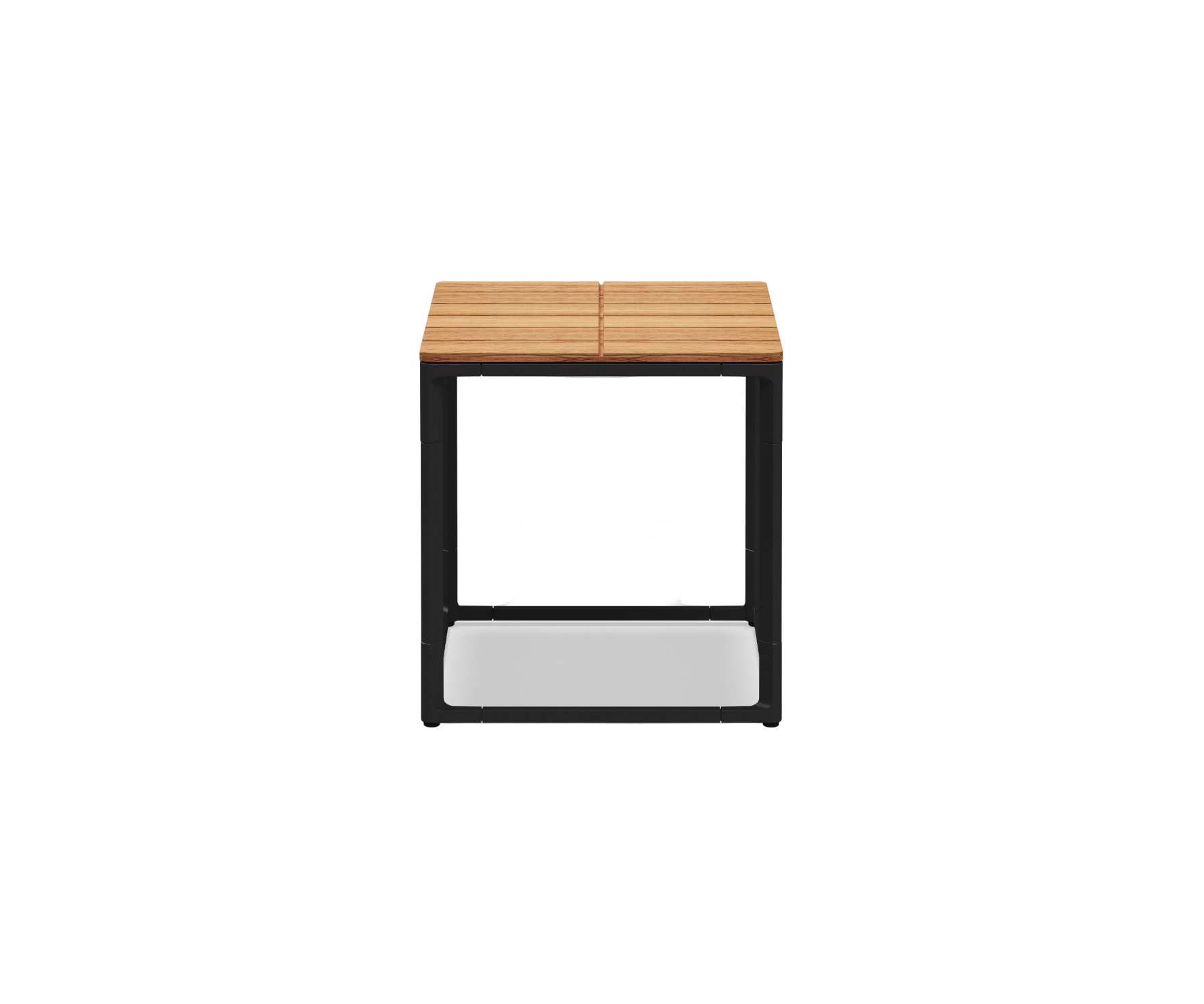 Notes: Powder coated aluminium frame. Natural finish teak slatted table top.
