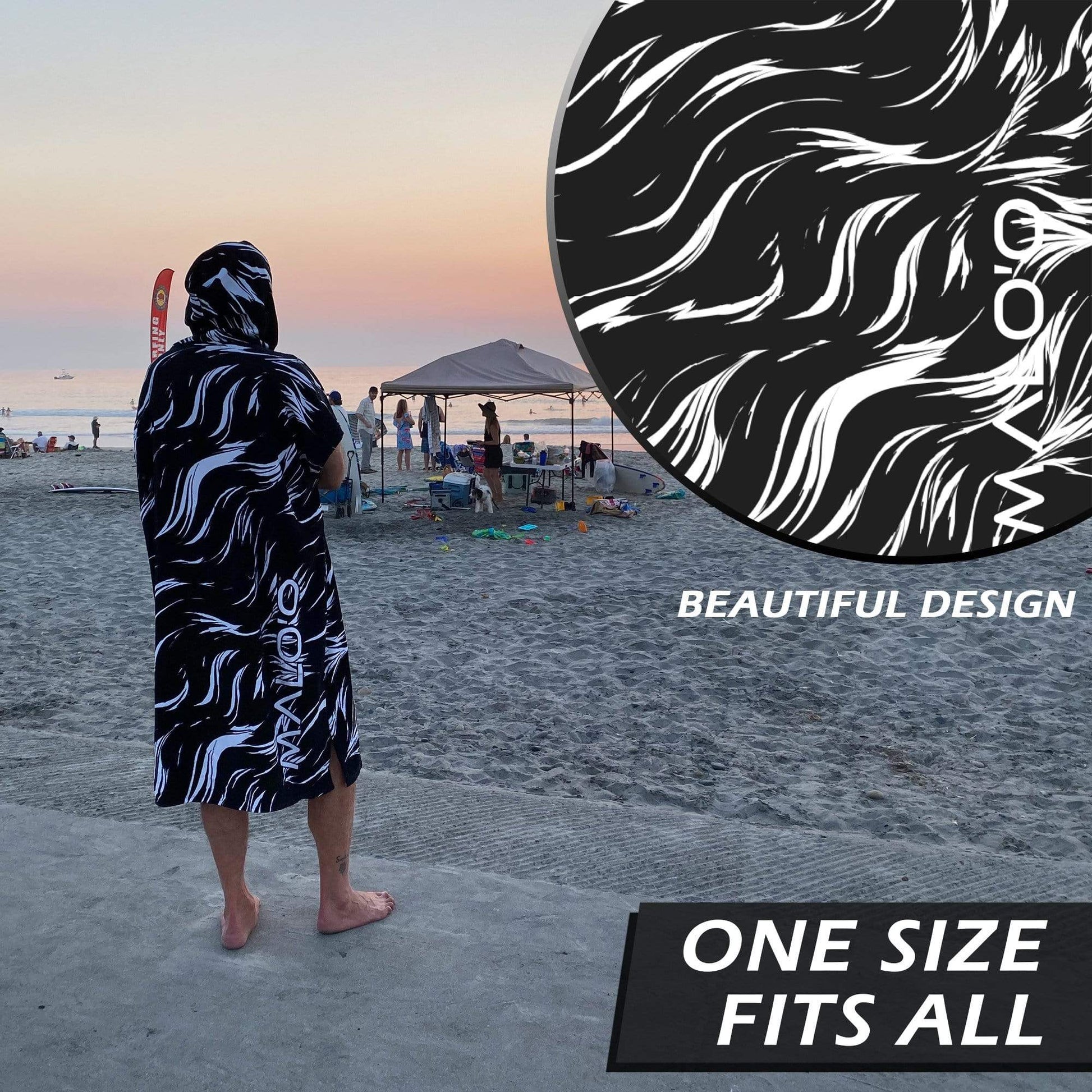 The Malo’o Mehana Changing Poncho is incredibly soft and large. At 36” x 47” with a 14” hood and 400 GSM cotton body, it’s designed to go over a wetsuit and provide you with room to change. No need to check if you’re covered while bending over or pulling your wetsuit off. The Malo’o Surf Poncho will cover you even if you are 6’6”!