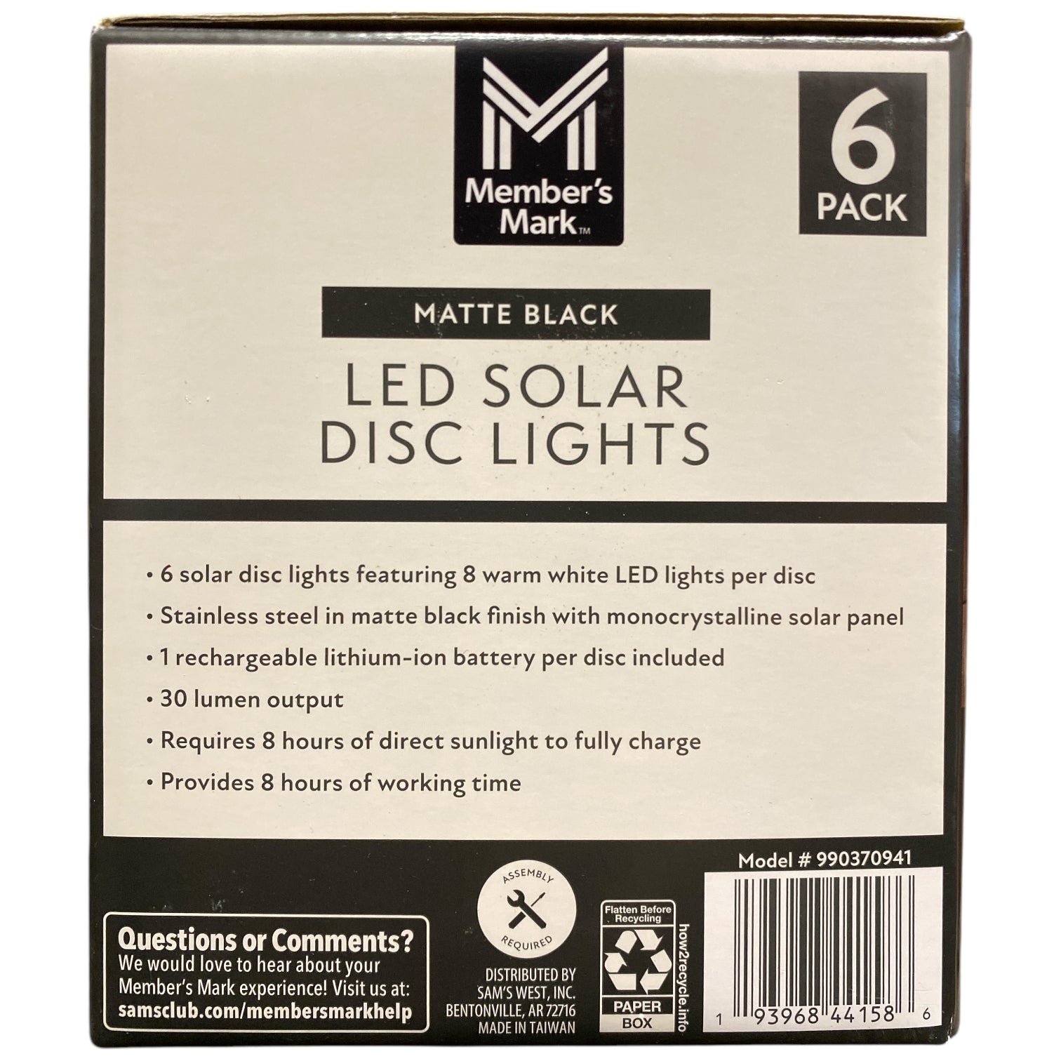 Member's Mark 6-Pack Matte Black LED Solar Disc Lights, 30 Lumens