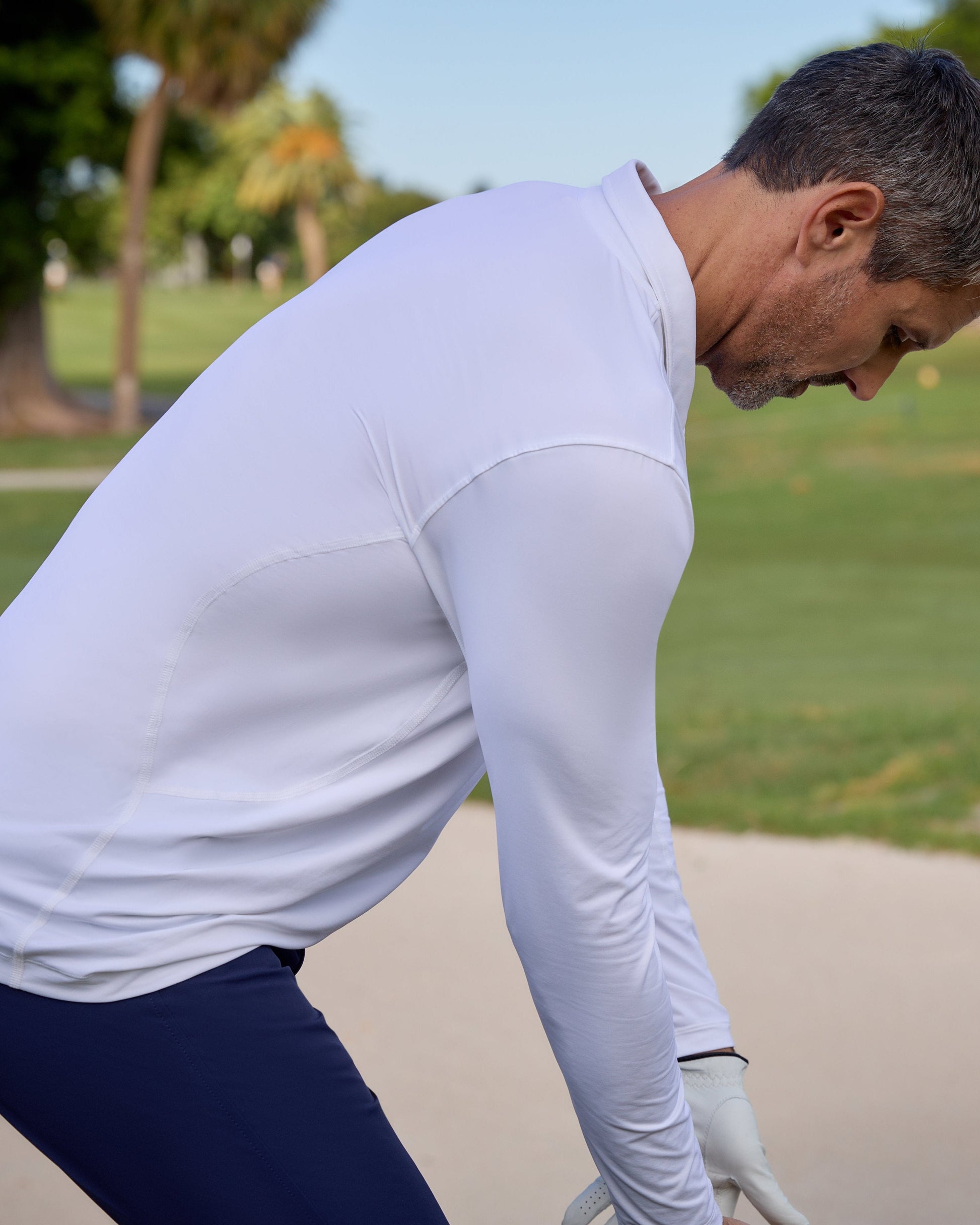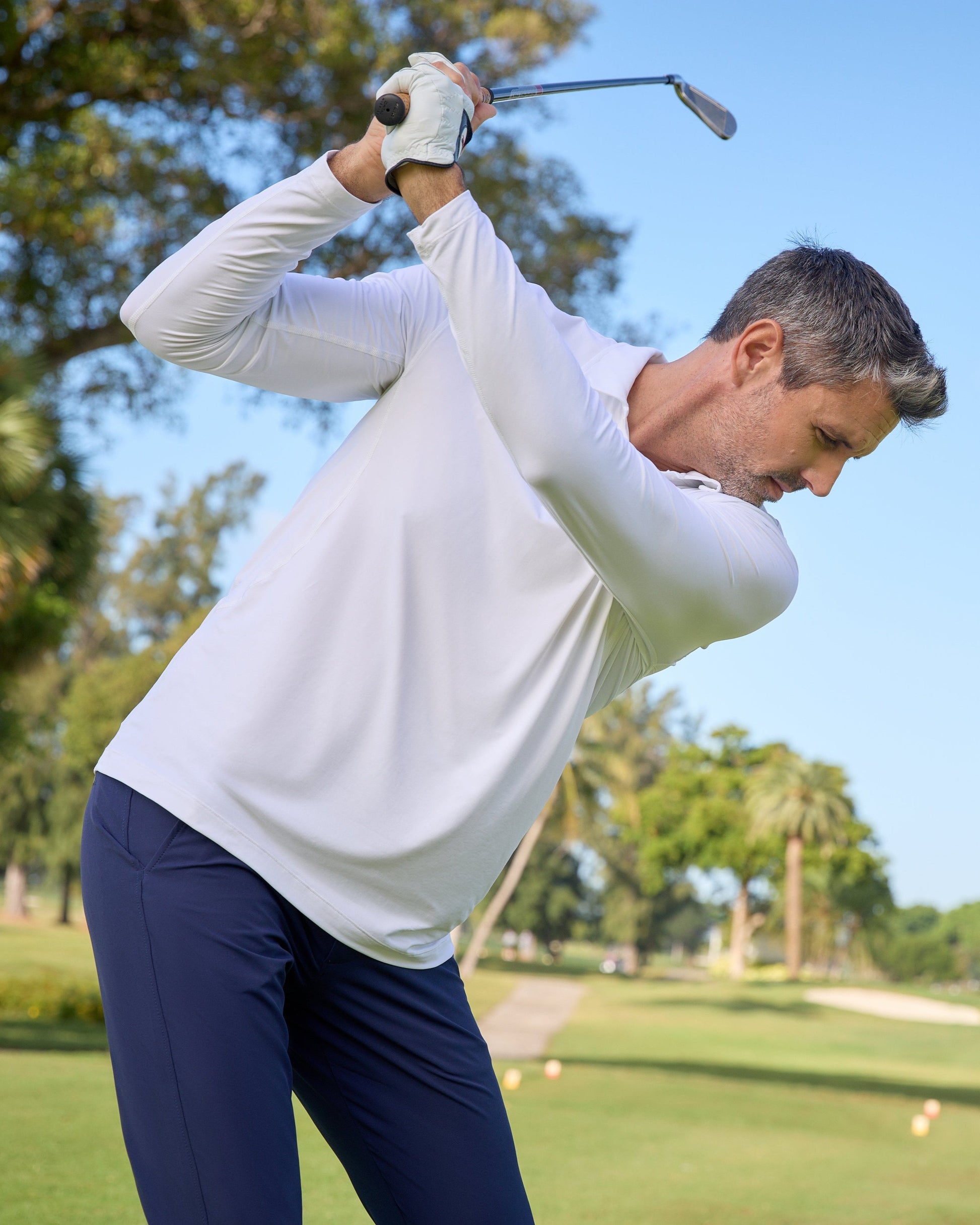 The BloqUV 50+ UPF men's sun protective polo, a long sleeve golf shirt that is a customer favorite for tennis, golf and beyond. The classic style, structured collar, four-button placket and cool, moisture-wicking SPF performance fabric keep you looking sharp and feeling fresh. Perfect golf gift for golf lover!