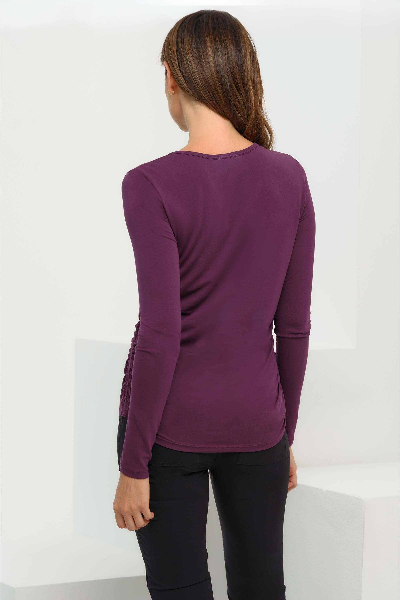 You’ll absolutely love how you look and feel in the Milly, a top so comfortable and flattering it’s destined to be on constant rotation in your wardrobe. This is a silhouette we’ve perfected — fitted but not tight, sleek but not clingy. It’s all about the luxe Pima cotton knit and the ruching detail along the side seams. With a classic crewneck, long sleeves, and a length that hits at the hip, the Milly works with all your favorite Anatomie bottoms. It’s also a breeze to top with a jacket when you want to pull off a more polished look. Choose this lighter weight top for all four seasons and enjoy European-level quality