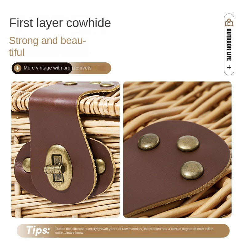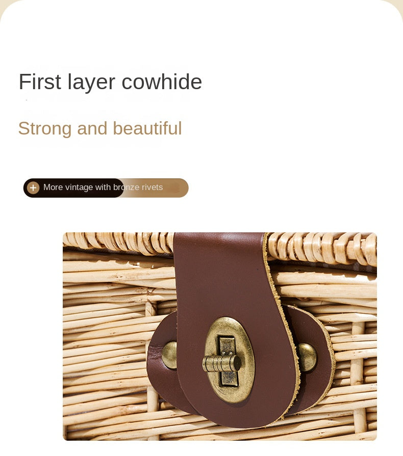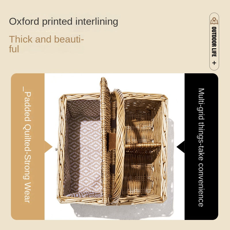 Mobi Garden 15L Woven Picnic Basket Portable Lightweight Wicker Storage Box Outdoor Camping Rattan Food Carrying Container Organizer With Lid Cover MobiGarden