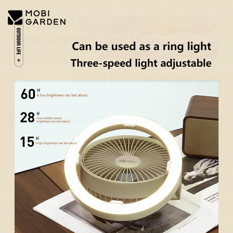 MOBI GARDEN Multifunctional Portable Fan Camping Electric Fan 15-60H Outdoor Travel Picnic 3-speed Adjustable Strong Wind 8000MAH