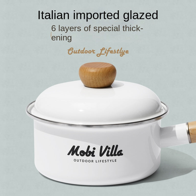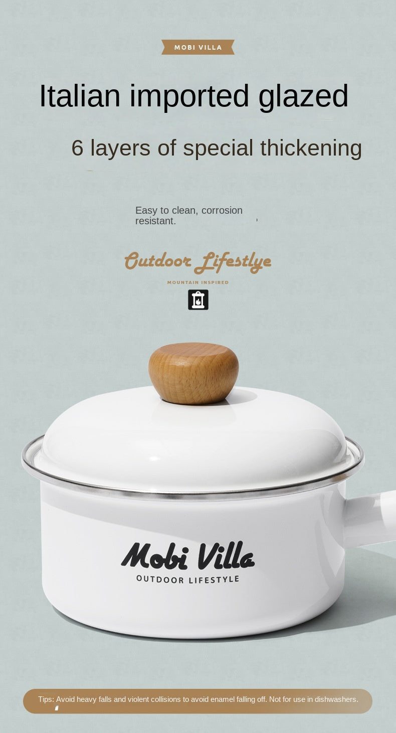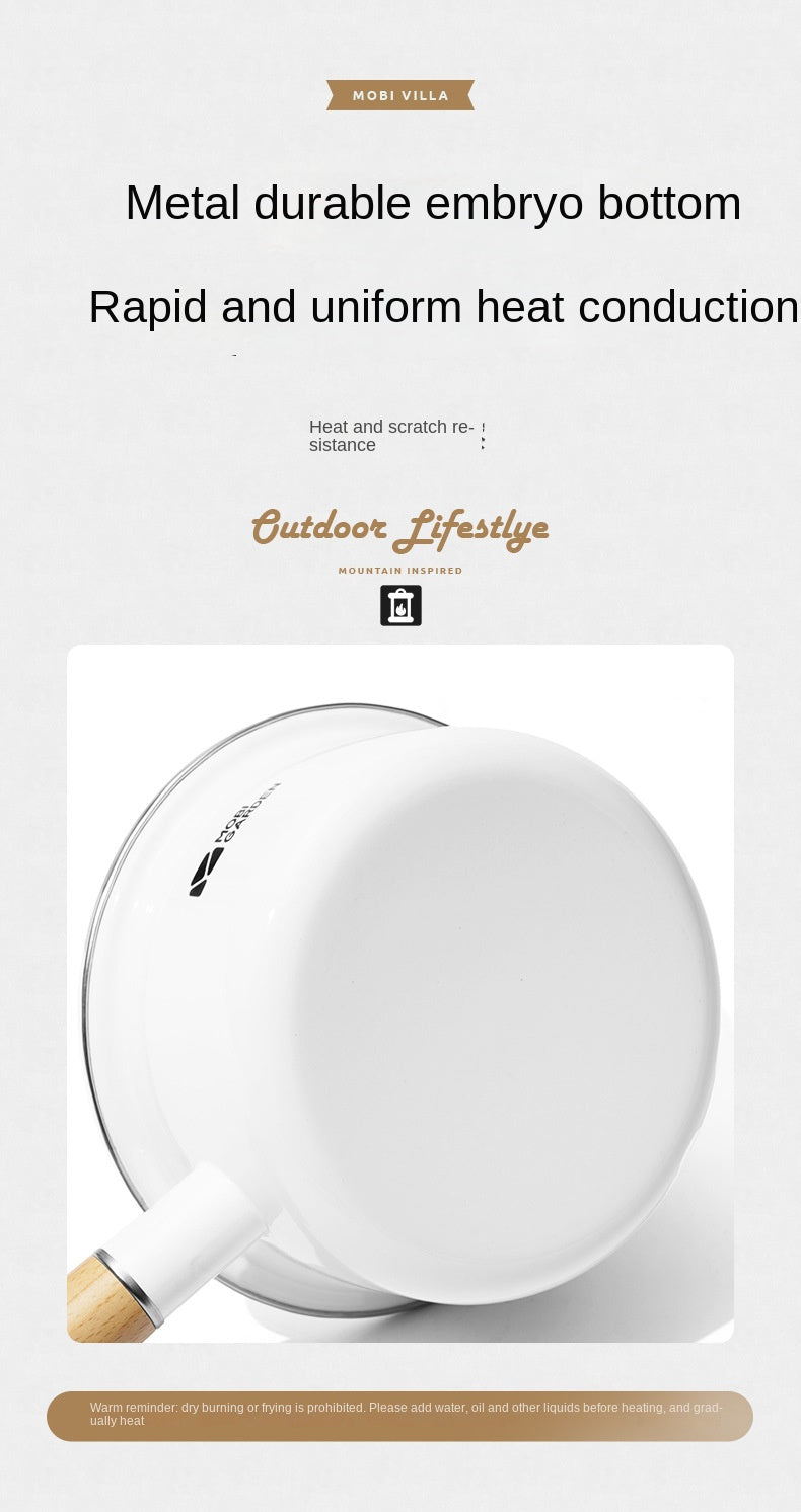 Mobi Garden Enamel Milk Pot Portable Lightweight Glazed Saucepan Small Soup Pot Outdoor Camping Cooking Utensil Kitchenware Food Grade Stainless Steel