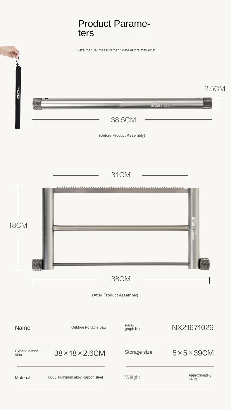 Mobi Garden Outdoor Portable Saw Ultralight Foldable Hand Saw Hacksaw Folding Wood Log Bush Camping Tool Crafting Only 243g With Storage Bag