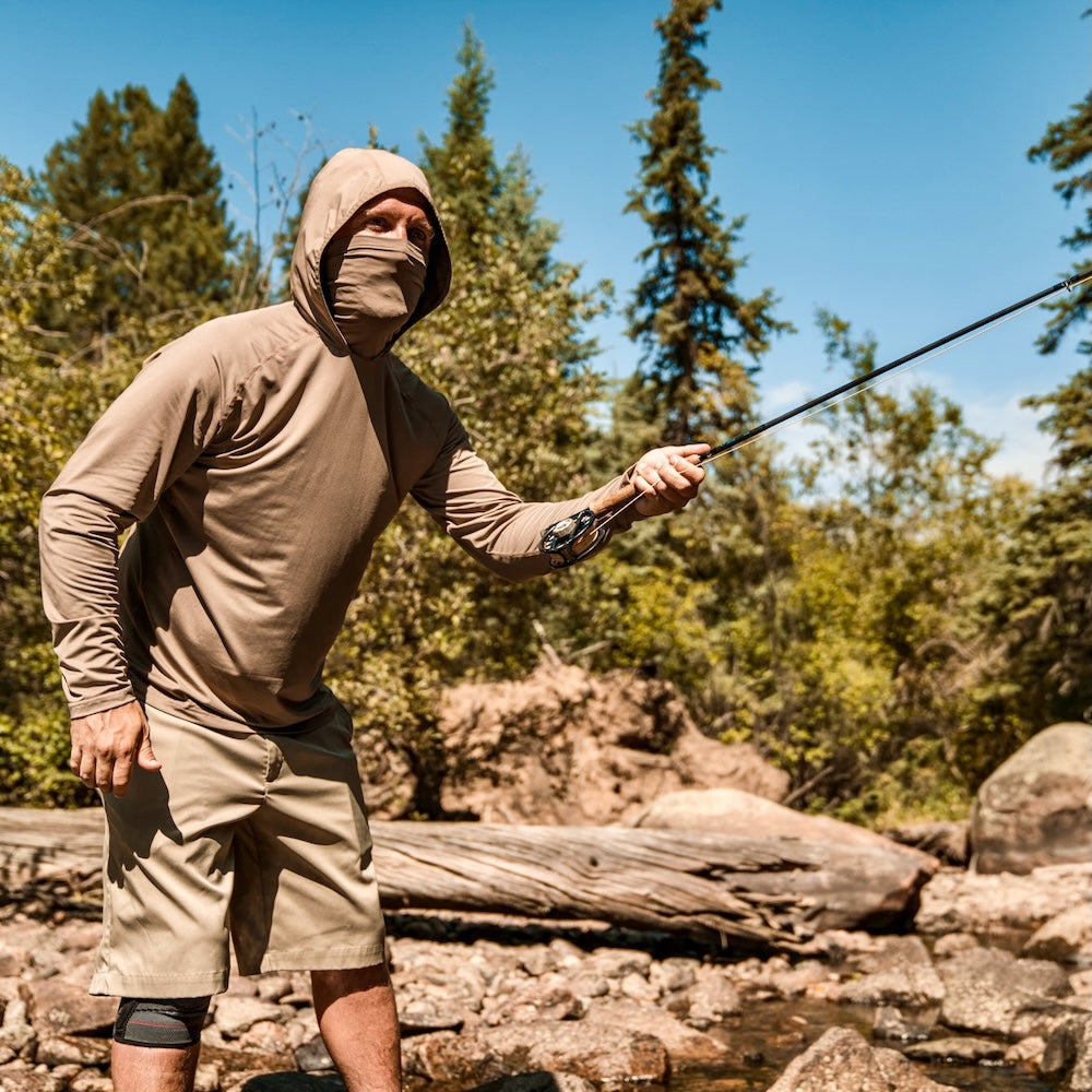 Maximum protection from sun and heat, our Fieldsheer Mobile Cooling® long sleeve hoodie with built in neck gaiter is designed to provide all day sun protection including the face and head. Dricomfort® GEO 365 is a chemical free mineral infused fabric that pulls heat and moisture from the body and dries 4x faster than regular knits. No harsh chemicals or topical treatments that might wash out. UPF50 sun block offers all day sun protection. We add Odorsheer® odor control to keep odor causing microbes under control. Vented sides and back for added comfort. Thumbhole sleeves make for a great base layer under a jacket or vest on cool mornings, then protect from harmful UV rays in the heat of the day.