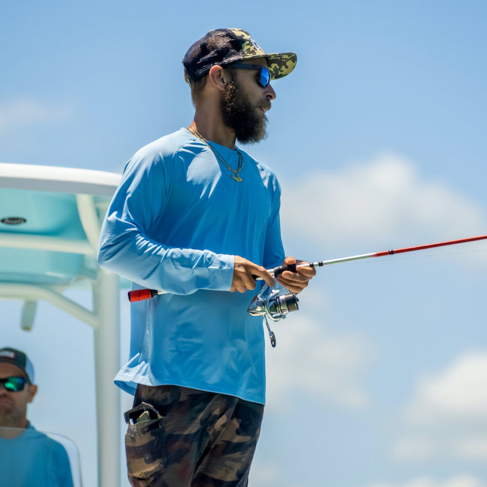 Fieldsheer Mobile Cooling® Long Sleeve shirt, a lightweight shirt designed for on-the-go activities needing maximum protection from the sun and heat. Made with DriComfort GEO 365 mineral infused fabric technology for superior temperature control and moisture wicking, drying 4x faster than traditional knits. There are no harsh chemicals or topical treatments that might wash out. We add UPF50 sun block and Odorsheer® for added protection from harmful UV rays, and to protect against odor causing microbes. Perfect for those who spend their summers outdoors whether for work, fishing, camping, hiking, a quick cover up at the beach, biking and so much. Made from recycled polyester and spandex, our shirt will resist wrinkles and hold its shape even in the harshest conditions.