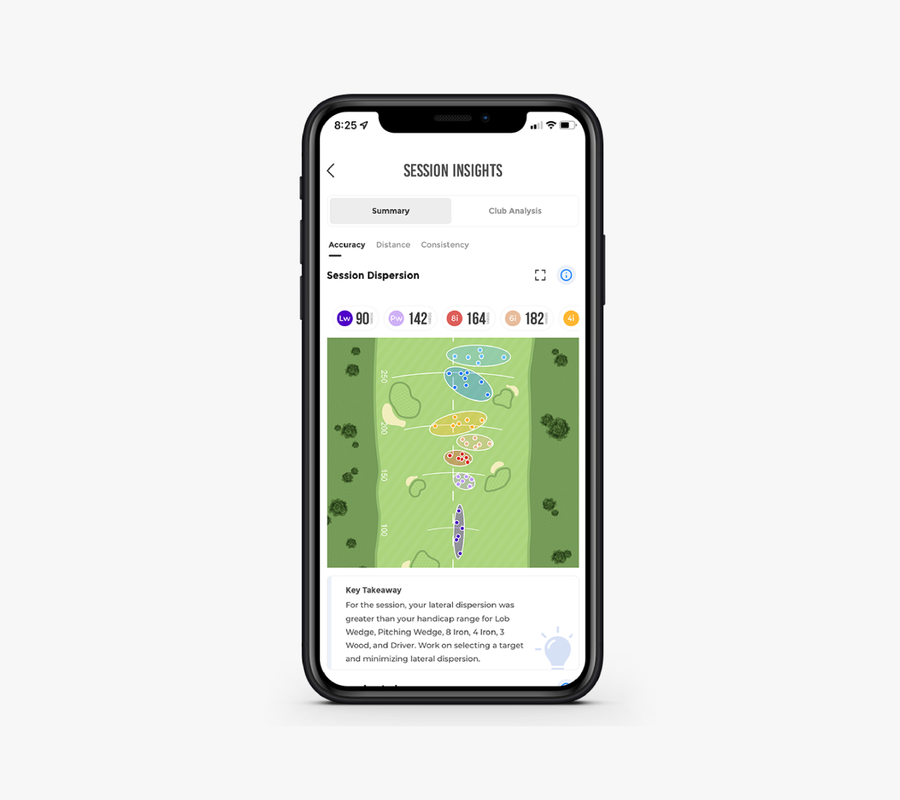 - Pairs iOS camera with radar processing for precise measurements on every swing