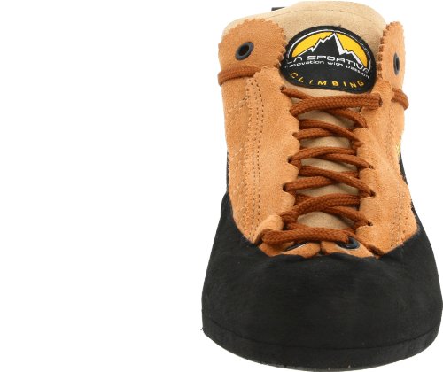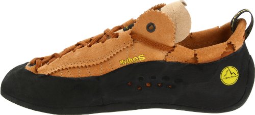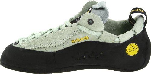 Whether in cracks or on slabs, the long-lasting La Sportiva Mythos Climbing Shoes are a fine, all-around choice for intermediate- to expert-level climbers. Full rubber rand ensures great crack performance, while also enhancing the shoe's durability. Unlined sueded-leather upper stretches and conforms to your foot shape. Full lace-up design for a custom fit. Slip-lasted construction. On sizing, please note climbing shoe sizes are only a suggestion as fit is highly personal. Foot shape, use, and style all play into size selection.