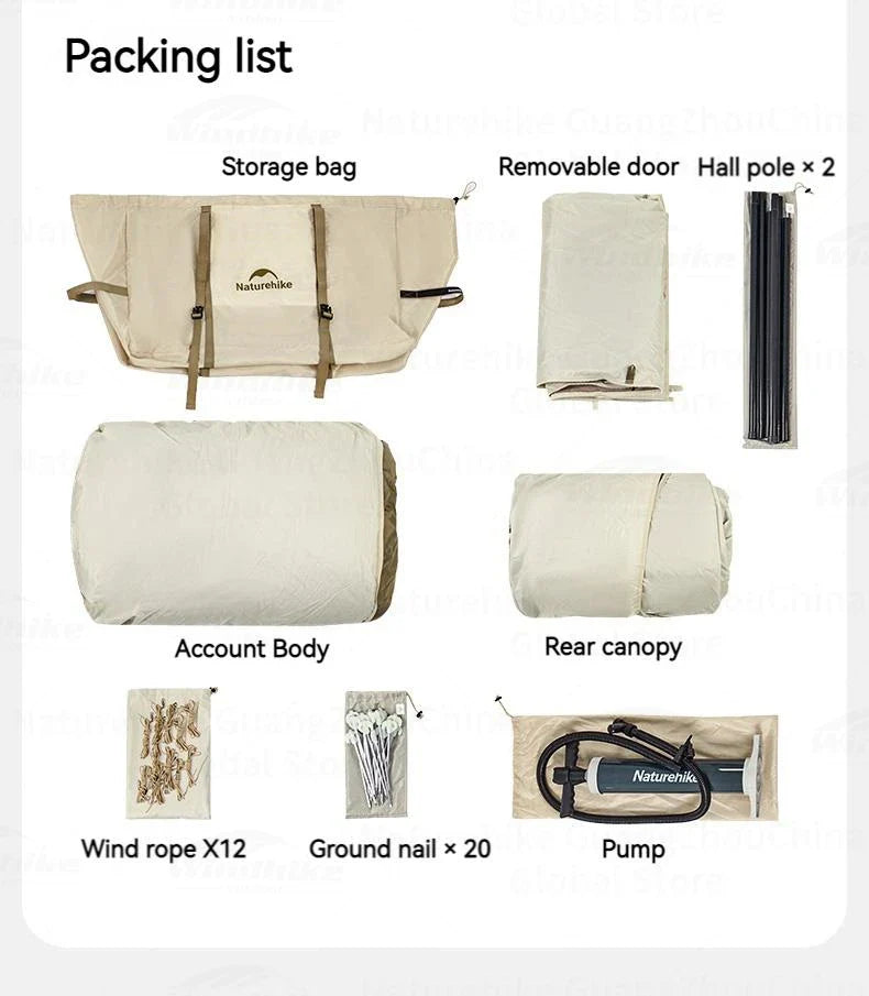 Naturehike AIR 7.0 Inflatable Car Tail Tent Portable SUV MPV Side Tunnel Tent Sunshade Waterproof Beach Car Rear Tent Camping Outdoor 35㎡ With Canopy