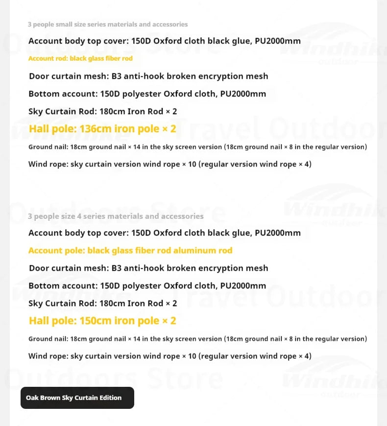 Ground nail: 18cm ground nailx14/Canopy version, 18cm ground nailx8/Regular version