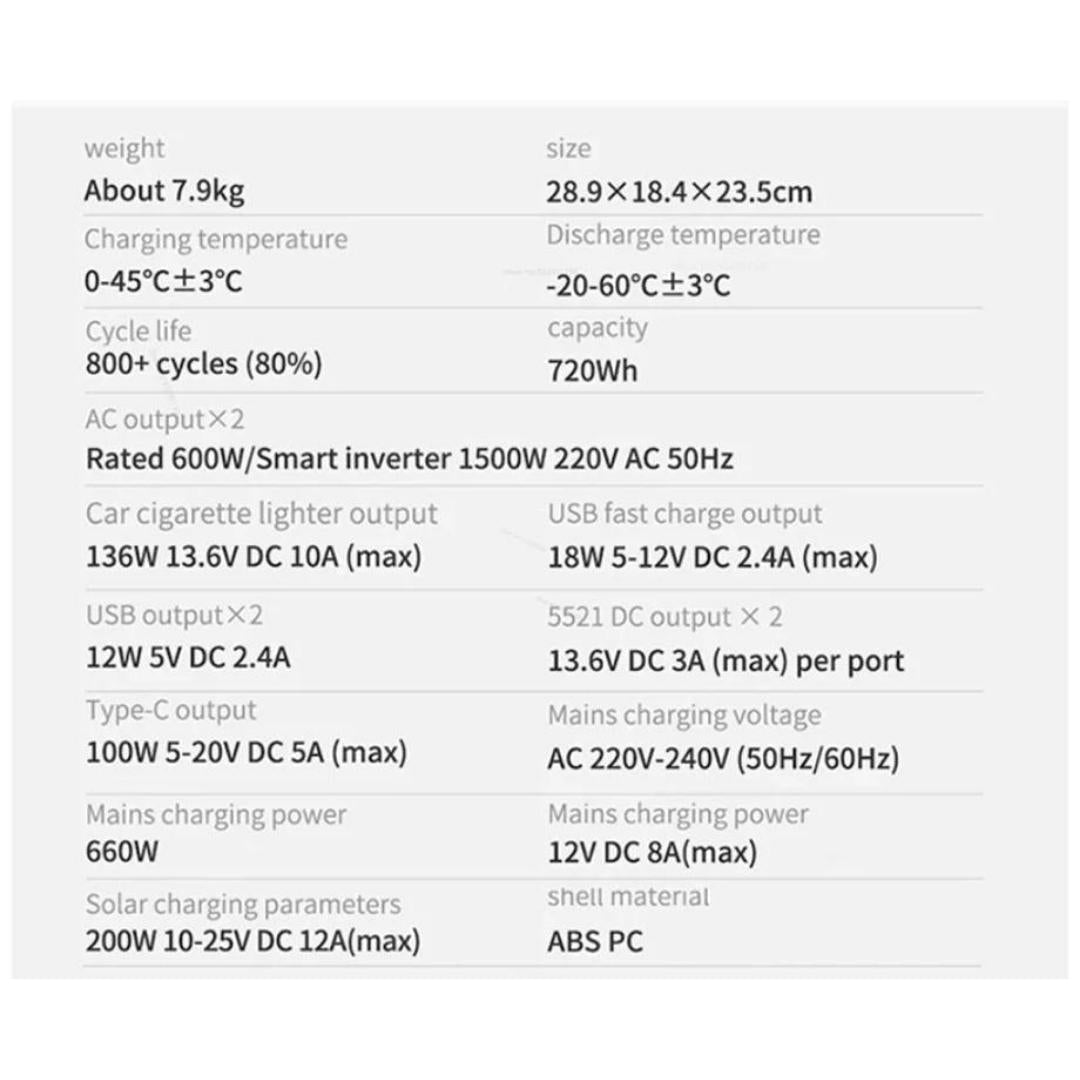 X-boost intelligent algorithm: Brings the ability to bring the 600W power port to 1,500W. Suitable for all large power equipment, heavy power consumption. Like an induction cooker, a mini toaster, a coffee machine when you're camping