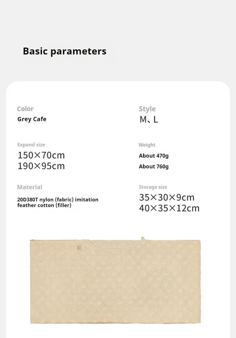 Material: 20D 380T Nylon(Fabric), Imitation Feather Cotton (Filler)