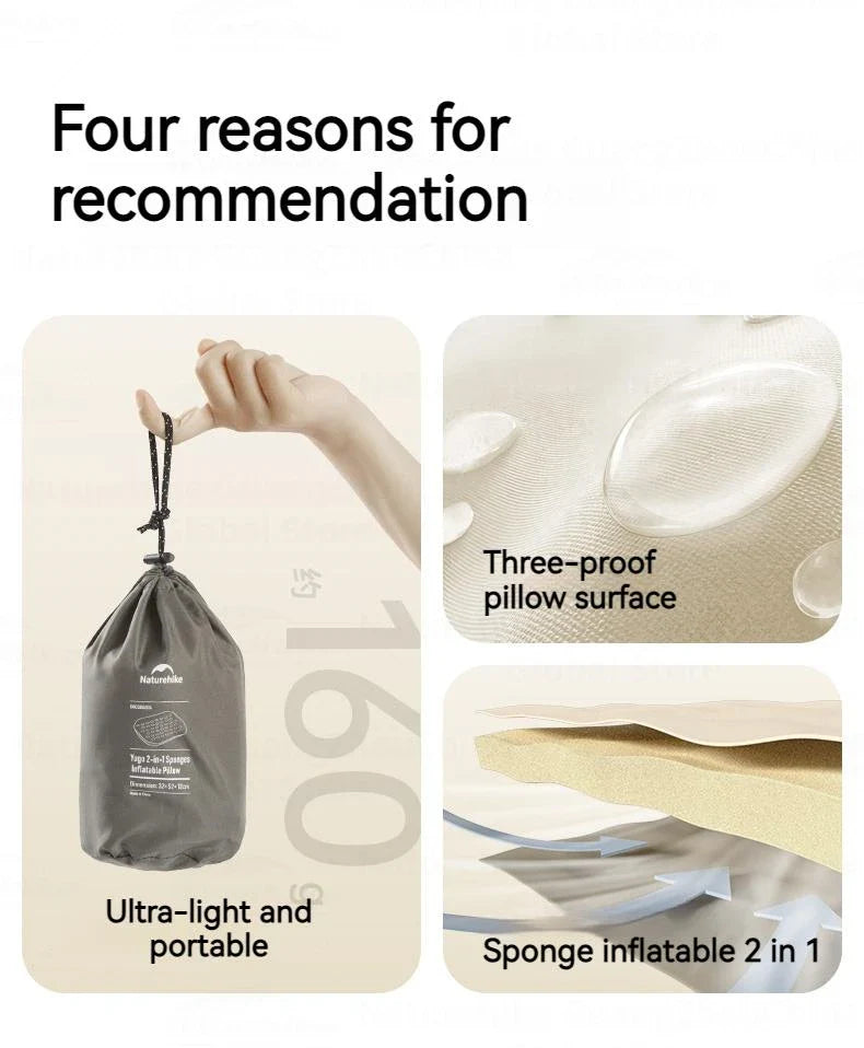 Naturehike Inflatable Pillow 3D Sponge Portable Ultralight Weight Only 160g Camping Outdoor Travel Neck Sleeping Silent Self Air Pillow Surface Pillow