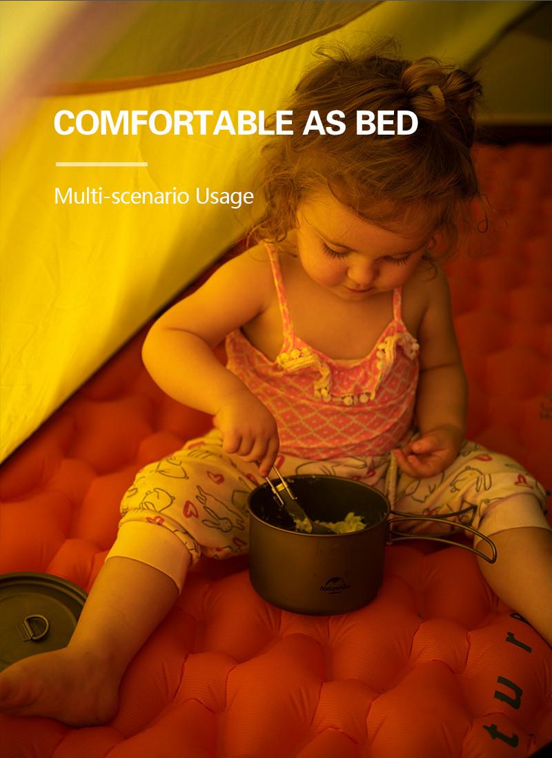 A pad of this type requires an external pressure source to inflate, this Naturehike sleeping pad can be inflated by the air bag or by blowing orally. Manually inflated pads have the advantage of offering good thickness and a great deal of comfort while being lightweight and able to pack to a very small size.