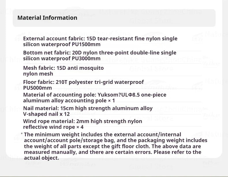 Internal Tent Area: About 1.68㎡ / About 2.73㎡