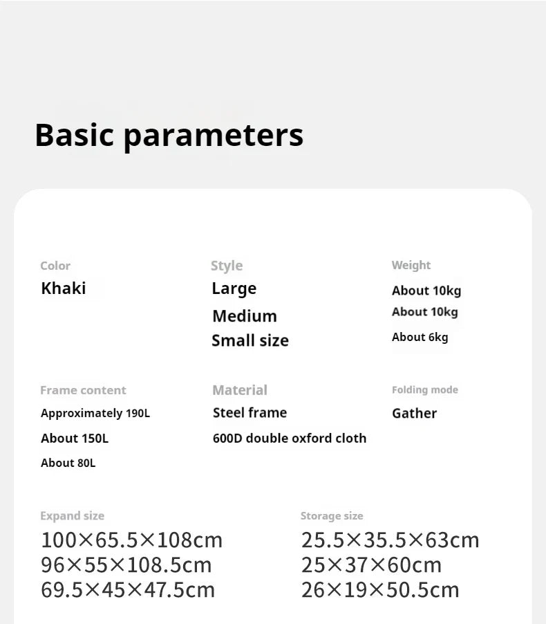 Material: Steel Frame, 600D Double Oxford Cloth