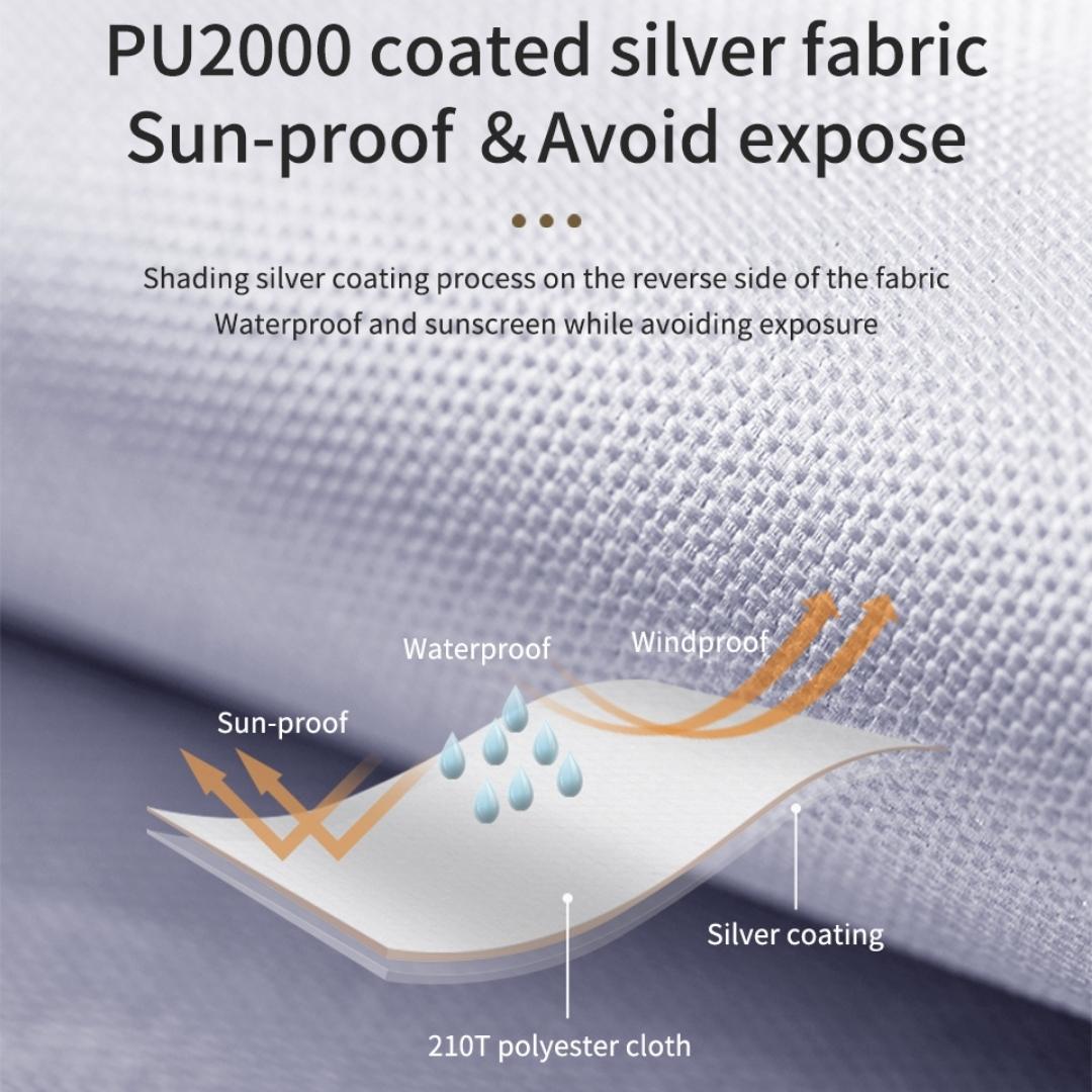 - Outer account: 210T polyester coated with silver