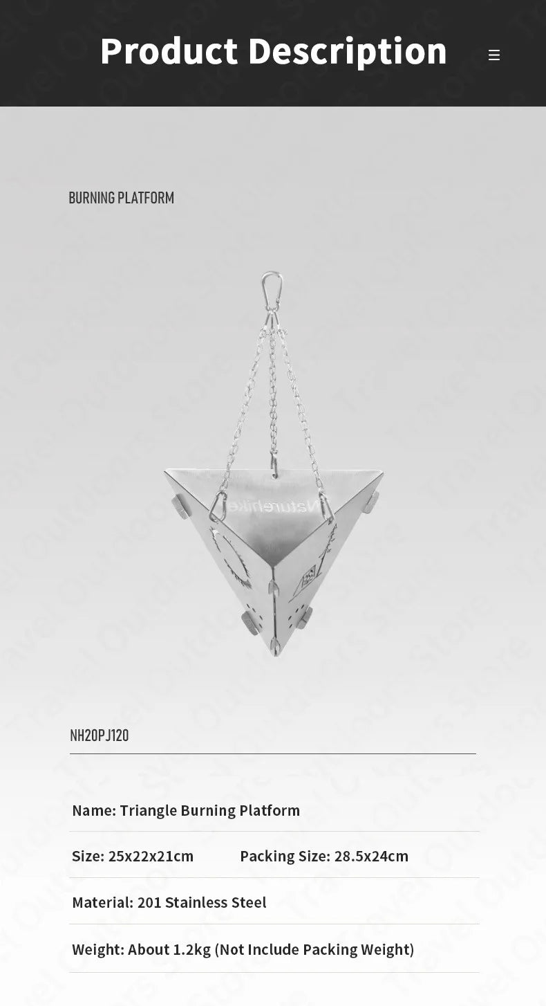 Naturehike Triangle Burning Platform Portable Ultralight Stainless Steel Grill Bonfire Rack Warm Oneself Hanging Furnace Fire Bowl Camping Outdoor