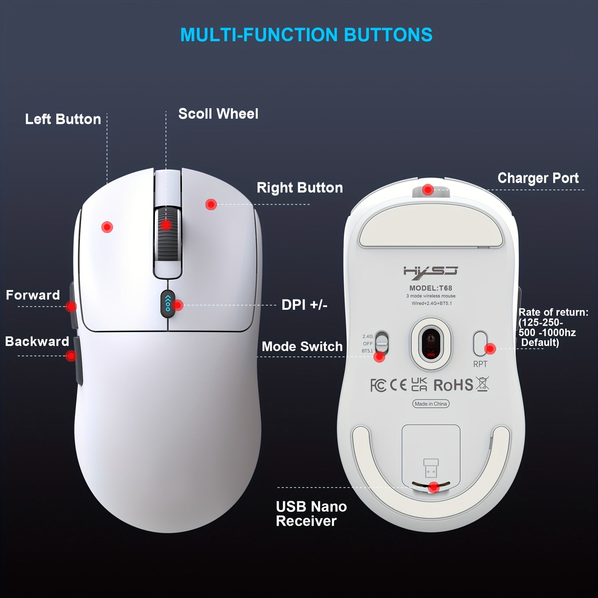 New 2025 Three Mode Gaming Mouse, 12000cpi Adjustable TJR2C9K