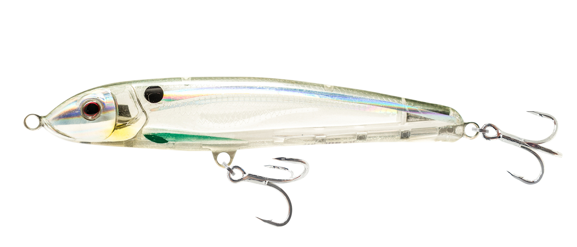 The RIPTIDE 4-3/4” Floating stickbait is an ideal surface floating stickbait for Striped Bass, Snook, Tarpon and any other inshore saltwater predator. It floats with a tail down position and has an extremely erratic side-to-side ‘S’ shaped action when retrieved with a long sweep of the rod. It can also be fished in a twitched “walk the dog" style retrieve that produces an enticing side-to-side action and a big body roll. The Riptide 4-3/4” Floating features a tail weight for extra-long casting distance and works equally well in calm or rough water.