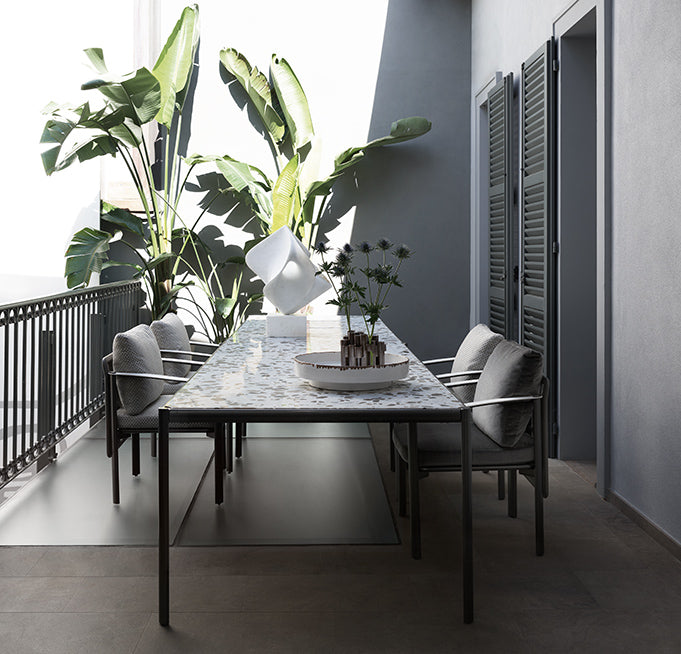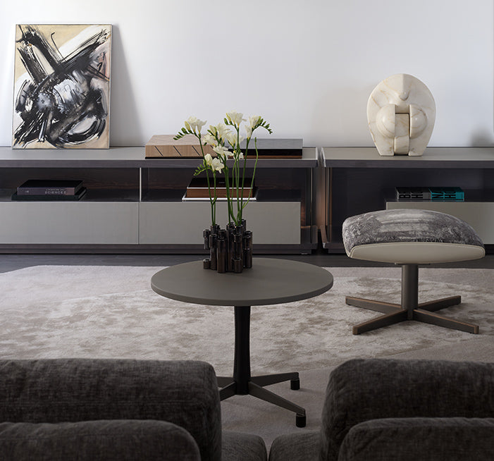 The OASI tray is inspired by the Japanese art of Ikebana, designed to showcase colorful botanical compositions. It features a series of ceramic vases in cylindrical shapes of different sizes finished in a sleek gunmetal color. Available in two options: a complete set with a cylindrical tray and flower holder, or the flower holder on its own. This elegant design celebrates the beauty of floral arrangements with a modern touch.