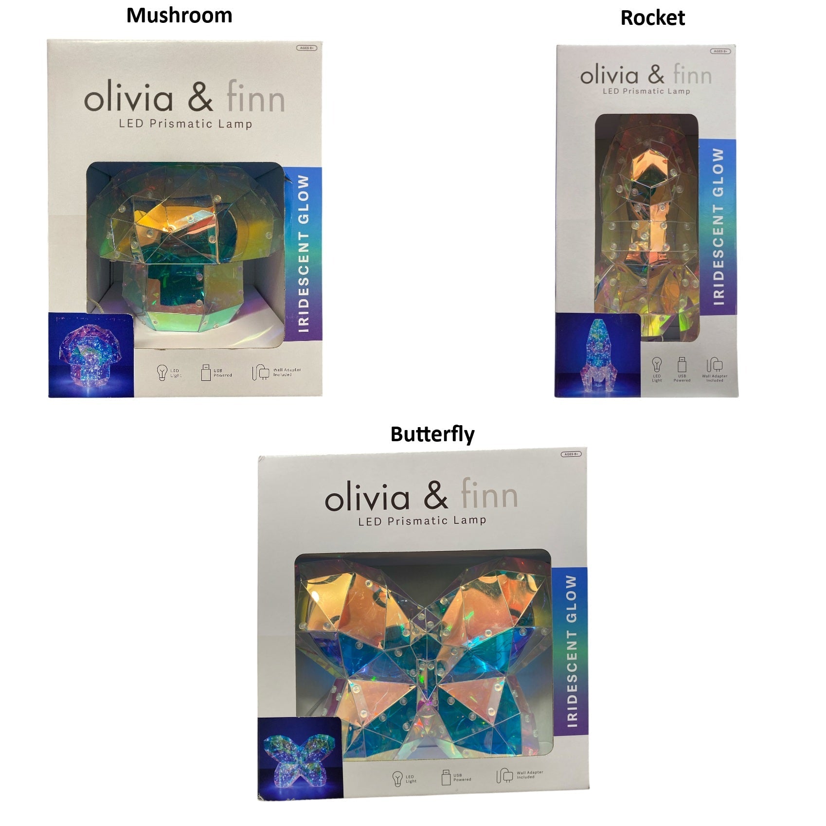 The Olivia & Finn Kids Prismatic Lamp is available in six enchanting styles to suit any child’s personality and room theme. Choose from a whale, unicorn, rocket, mushroom, butterfly, or bear shape. Each Olivia & Finn Kids Prismatic Lamp is sold separately and designed to complement each other, allowing you to mix, match, and collect them all to create a delightful ensemble of magical figures. They also make great gifts for kids for birthdays, holidays, or any special occasion! Olivia & Finn Kids Prismatic Lamps comes with a USB cord and a power adapter, offering versatile placement options without the hassle of batteries. Simply connect to a computer or portable power bank or plug it in with the included wall adapter. The USB cable has a push-button on/off switch that is easy for little hands to operate, allowing kids to turn the lamp on and off independently. A celebration of color, creativity, and expression, Olivia & Finn decorative accents for kids are designed to delight and inspire from playtime to bedtime.
