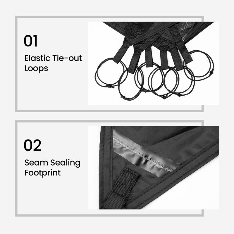 This footprint features elastic tie-out loops and seam sealing, making it easy to secure and highly effective at preventing water ingress. Additionally, it offers extra cloth for storing your outdoor gear, keeping your campsite organized and your equipment protected. Enhance your camping experience with the reliable and functional OneTigris Stella Tent Footprint.