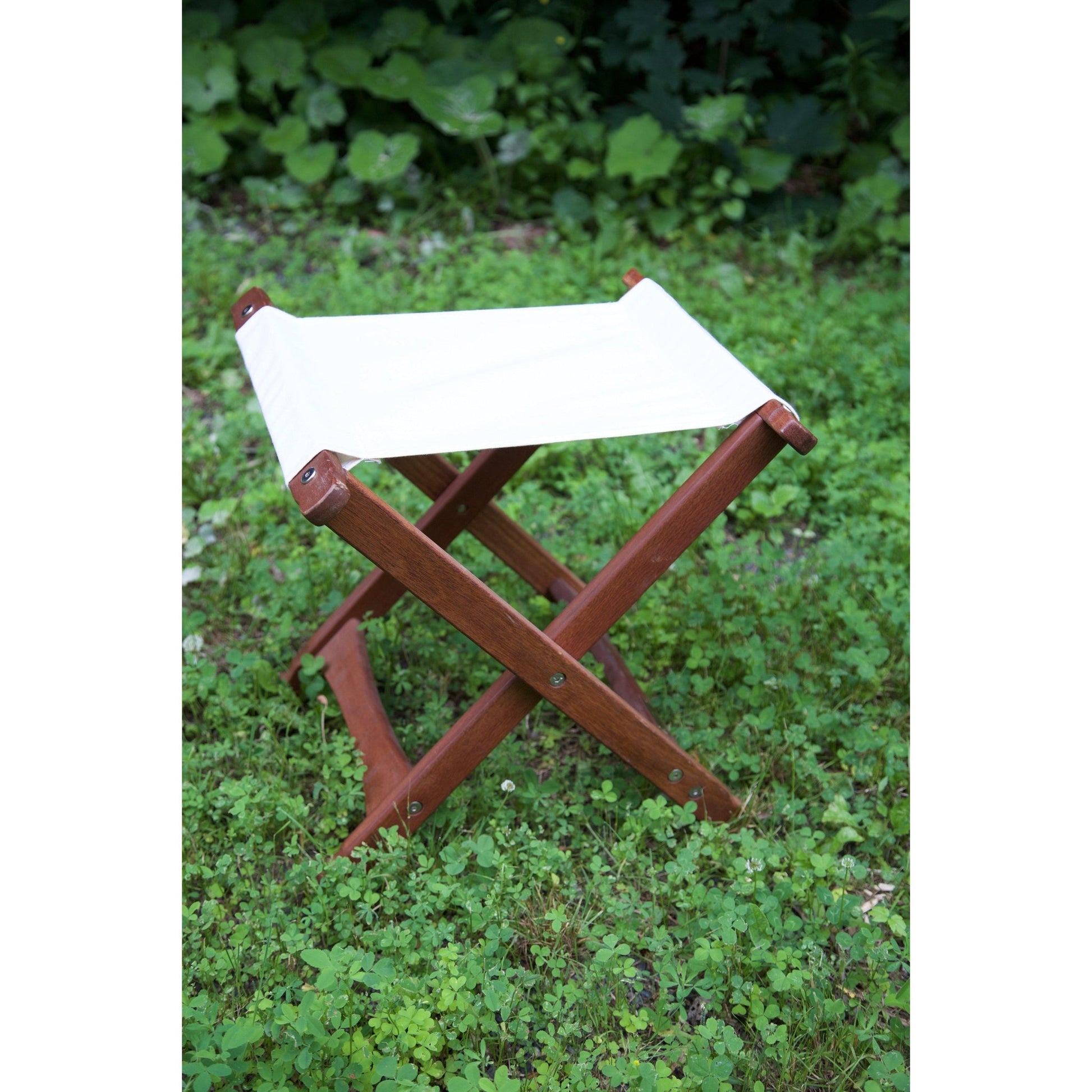 - Canvas Stool - Crafted from renewable hardwood Keruing wood, it has been dipped in oil for an extra protective finish and covered with an attractive heavy-duty dark green or natural polyester canvas.