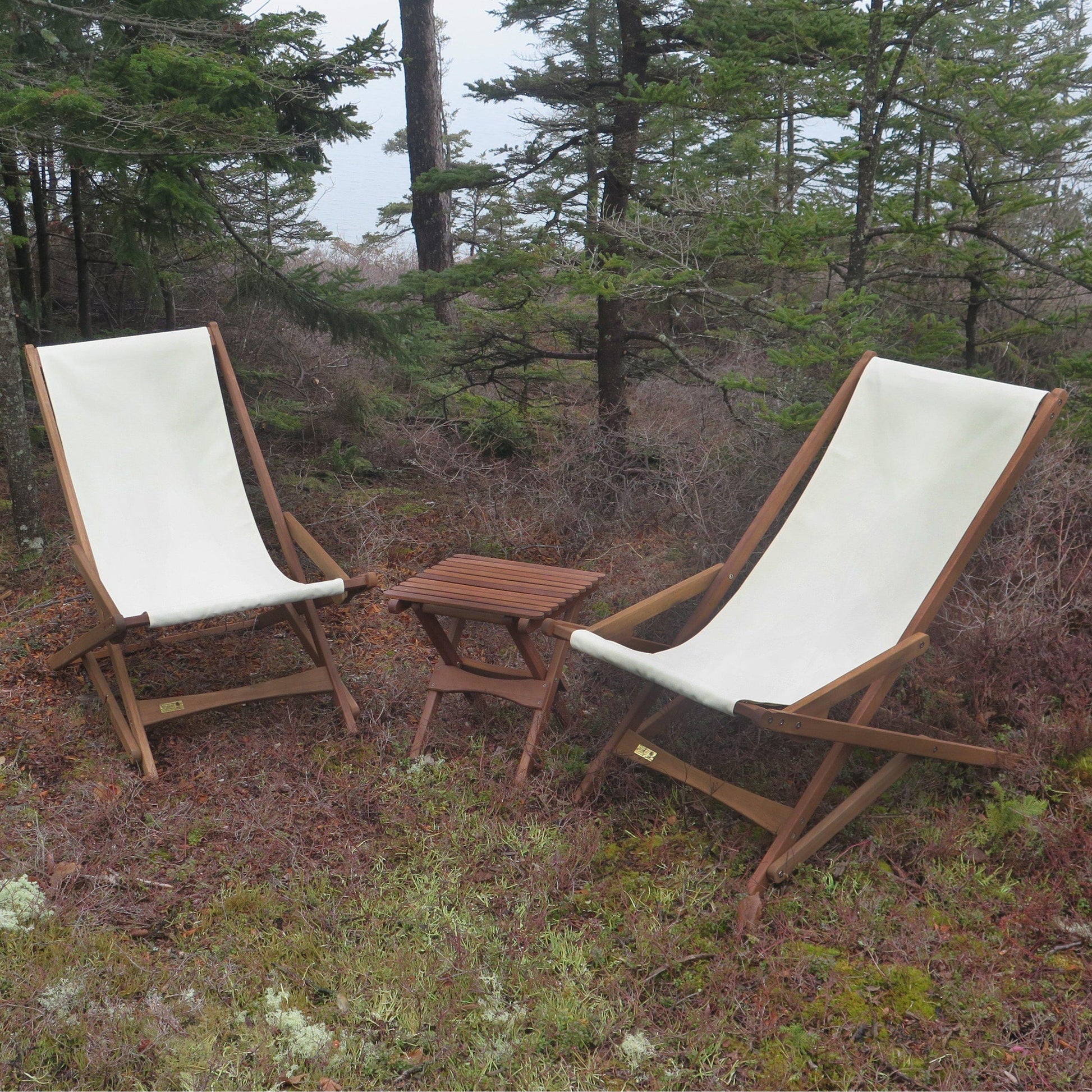 - Simple and attractive, this canvas sling chair is ideal for your home but is also portable. At 16lbs, this wooden beach chair is easy to take with you wherever you need a place to sit. Take it to the park for a picnic, a barbecue, or ball game.