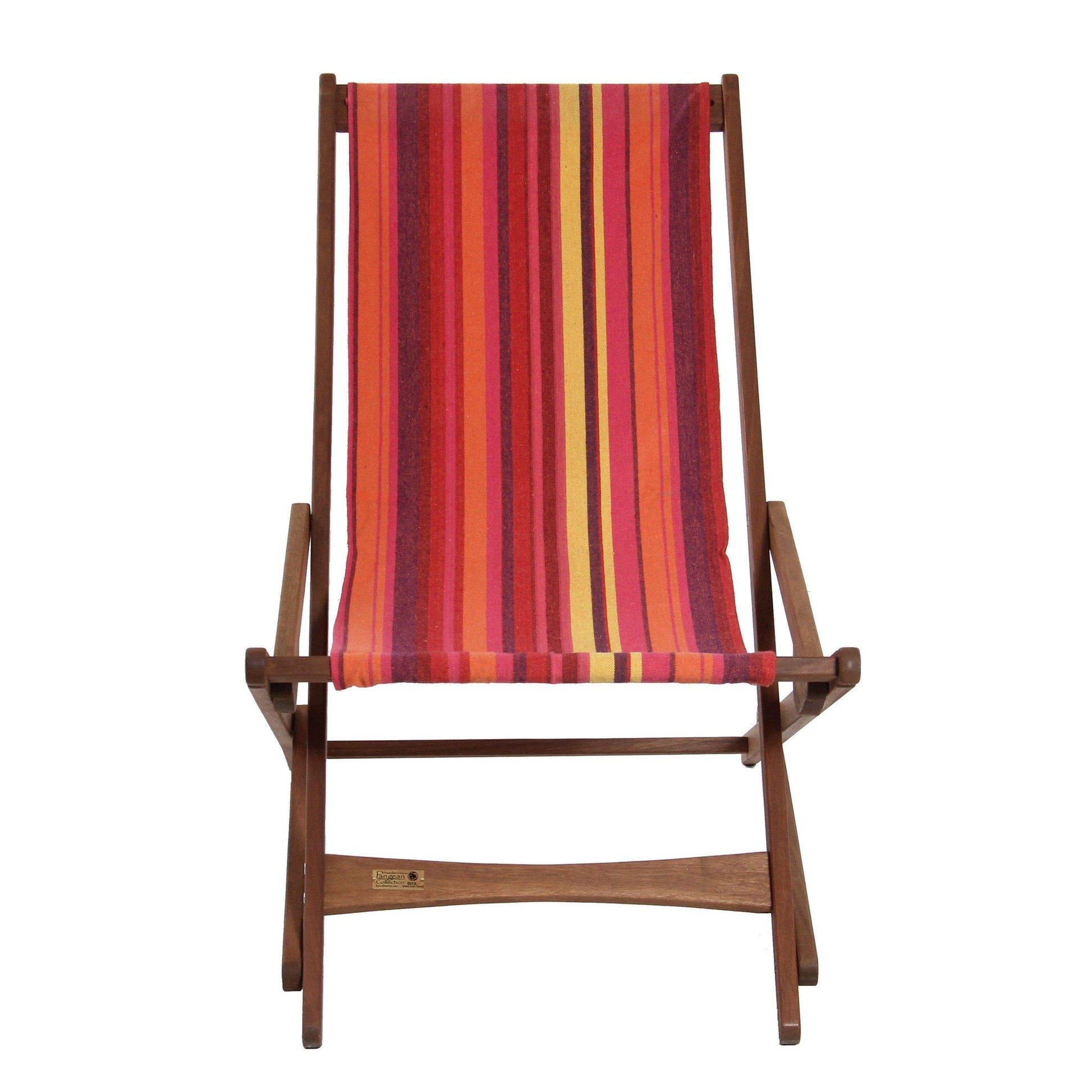 - Crafted from renewable hardwood Eucalyptus Grandis, the sling beach chair has been dipped in oil for an extra protective finish and covered with an attractive heavy-weight polyester canvas.