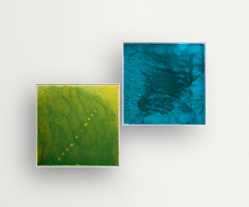 The decoration with oxidized colours and the Luce finish featuring exclusive colours are made by hand by Nicolò Morales on tops made of stoneware.