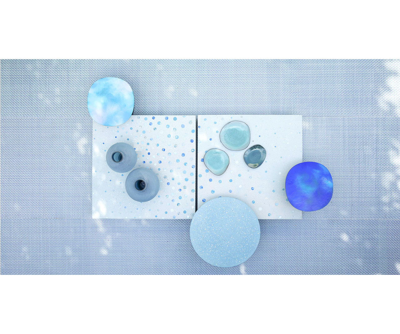 External surface: Opus, moulded concrete, decorated with a mosaic in recycled glass or in ceramic shapes. Opus is handmade in the exclusive colours of Paola Lenti by Simona Sporchia.