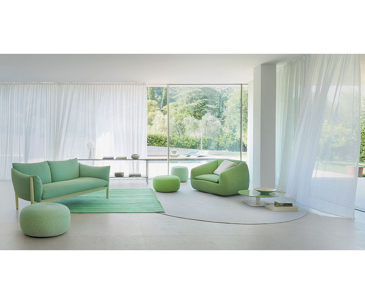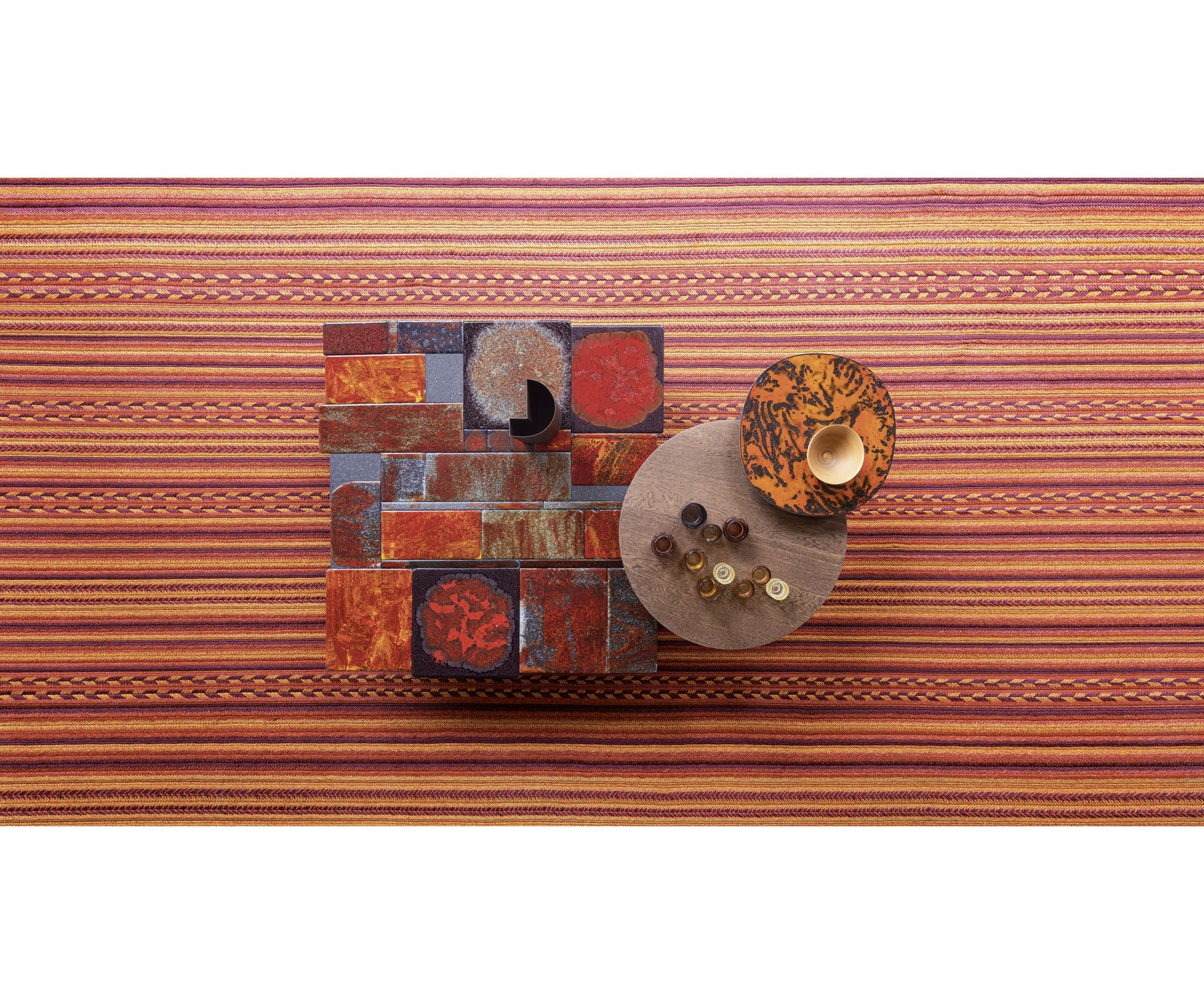 Navajo is a modular rug for exterior and interior environments created by sewing together lengthwise a variable number of braids. The extremities of each braid are finished with a fringe which is always featured on the short side of the rug.