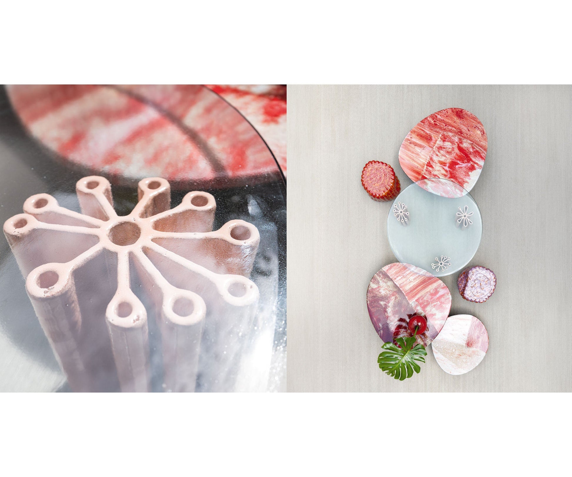 The elements composing the base are crafted and decorated by hand in exclusive colours by Nicolò Morales; they are positioned according to a pre-established scheme.