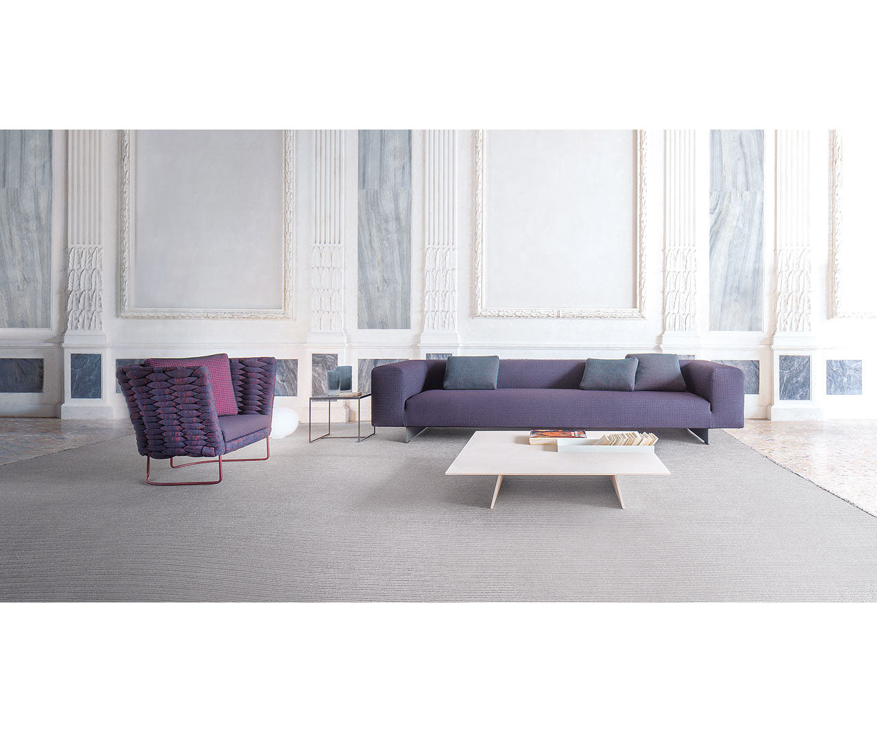 Samo is a modular rug for exterior and interior environments created with cords in mélange colours which are sewn together lengthwise.