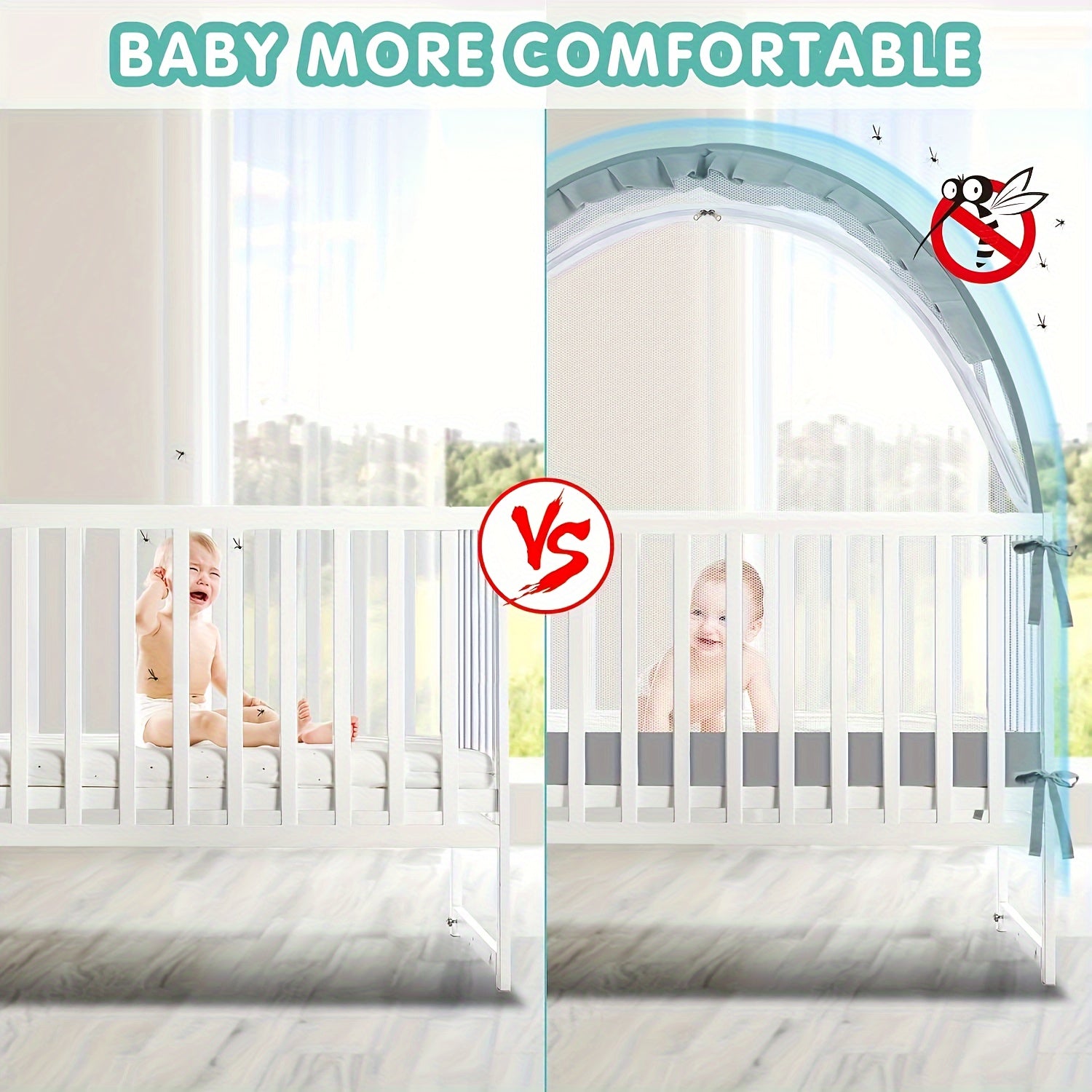 Foldable Safety Net Canopy: The crib tent is designed to easily pop up and fold away, providing convenience for storage and travel. Its space-saving design makes it practical for modern families.