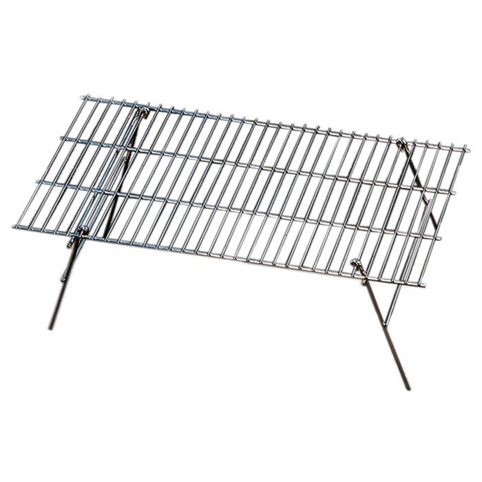 A good quality chrome-plated grill. Crossbolts are spaced close together for cooking hamburgers, hot dogs, and steaks directly on the grill. Permanently attached legs fold for easy storage and stick into ground for rigidity.