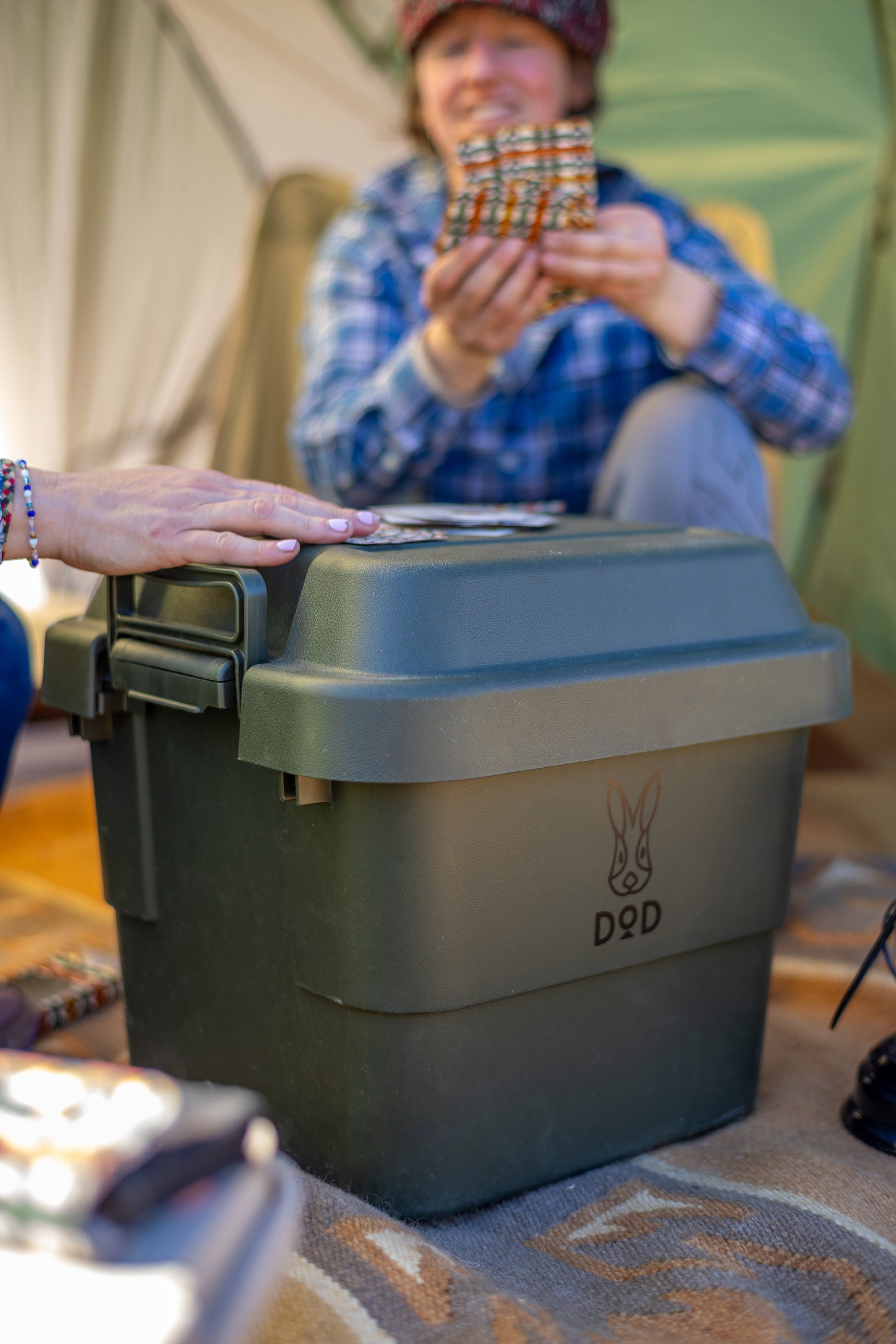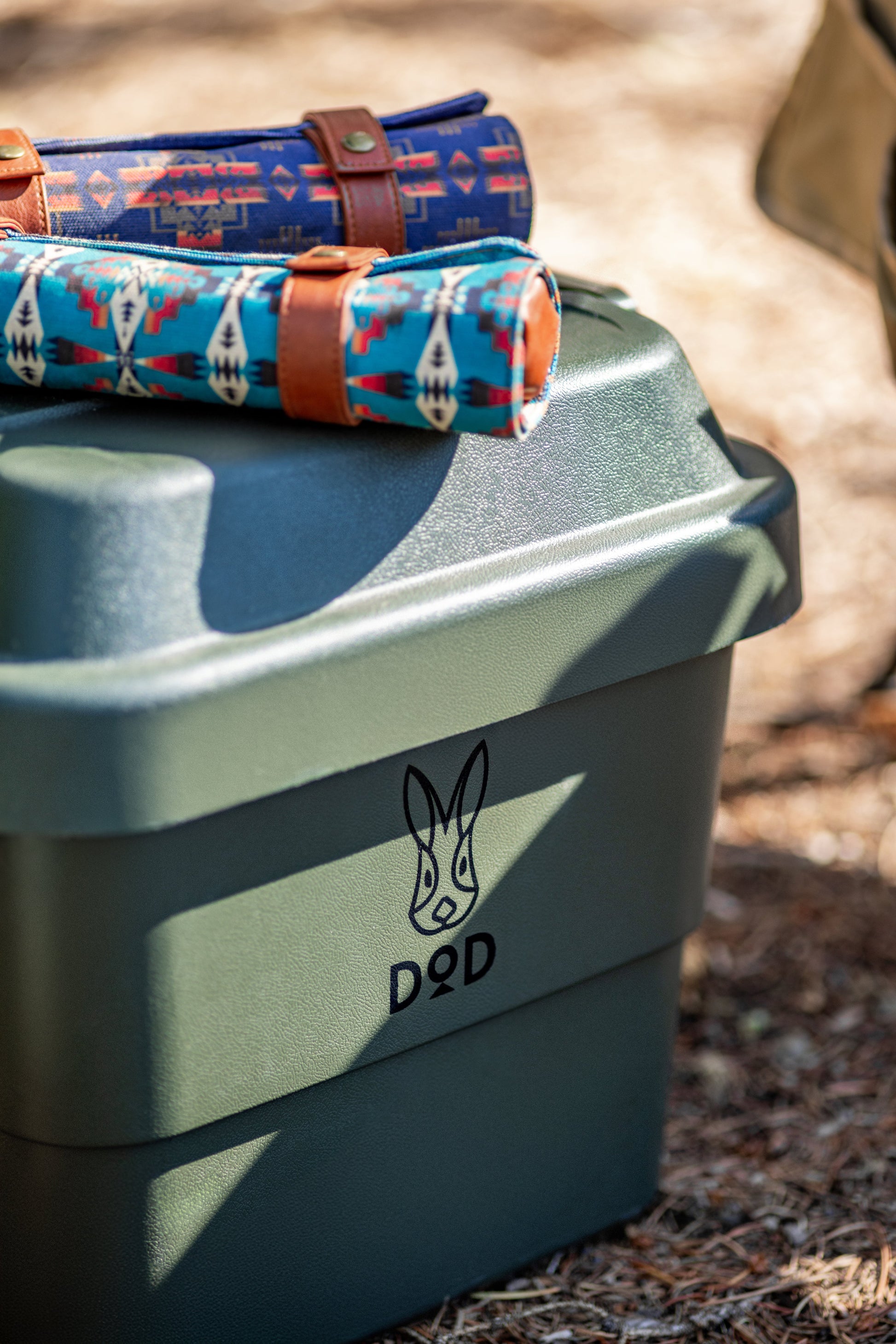 The Popular Guy Case offers practical storage in a 7.9-gallon capacity, ideal for both camping gear and home use. Styled in DOD's unique olive color, it blends functionality with design flair.