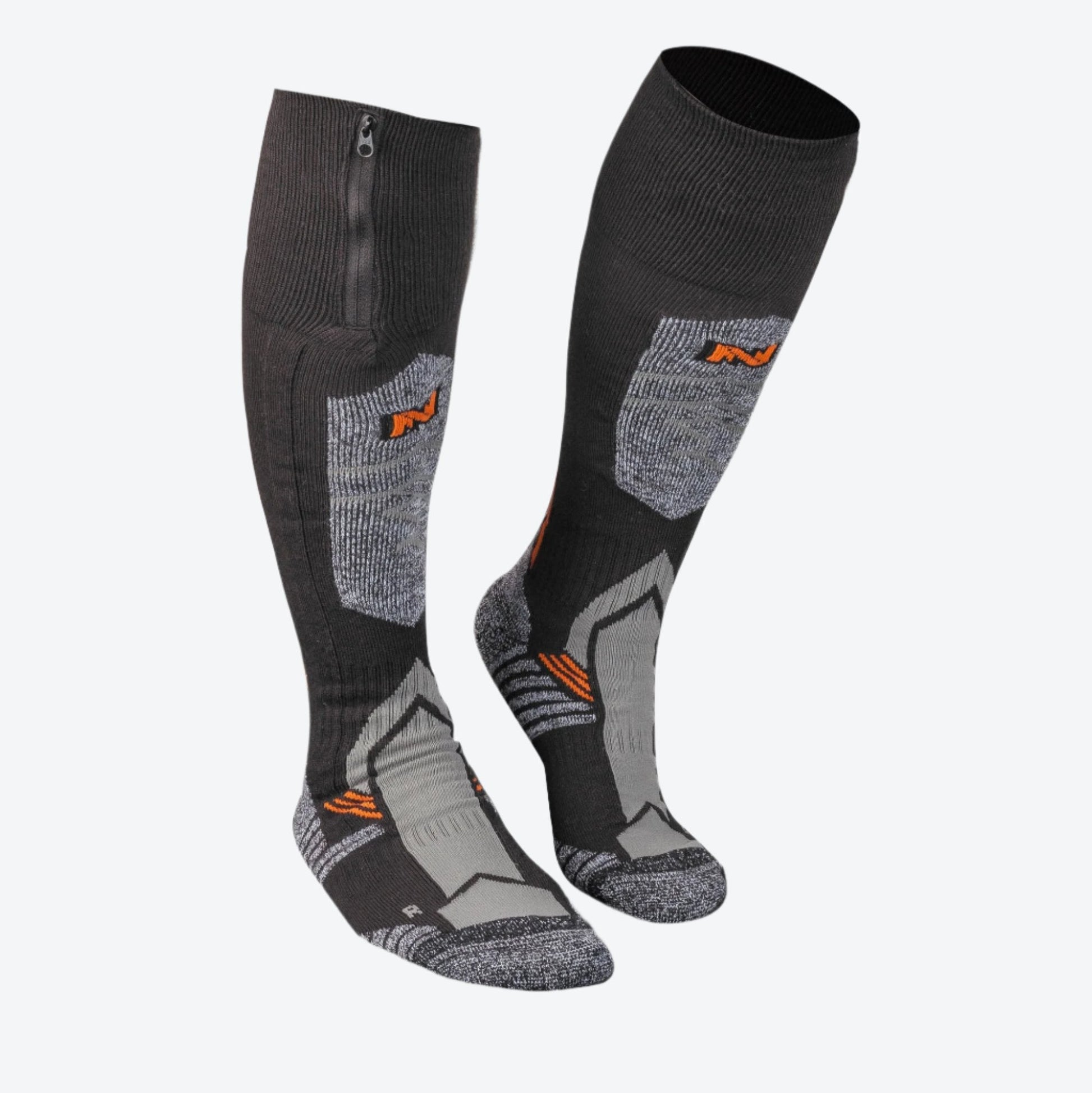 The Mobile Warming Pro Compression Heated Socks are the ultimate choice for high-performance snow sports enthusiasts. Designed to offer a snug, compression fit, these socks integrate cutting-edge heating technology strategically placed under and over the toes, ensuring your feet remain warm and well-circulated even in the coldest conditions. Adjust temperature and monitor battery charge right from your phone, using our MW Connect App®, and new this year control from your Apple Watch WatchOS control. With easy machine washability and a range of unisex sizes, these socks are as practical as they are essential for your winter sports wardrobe.