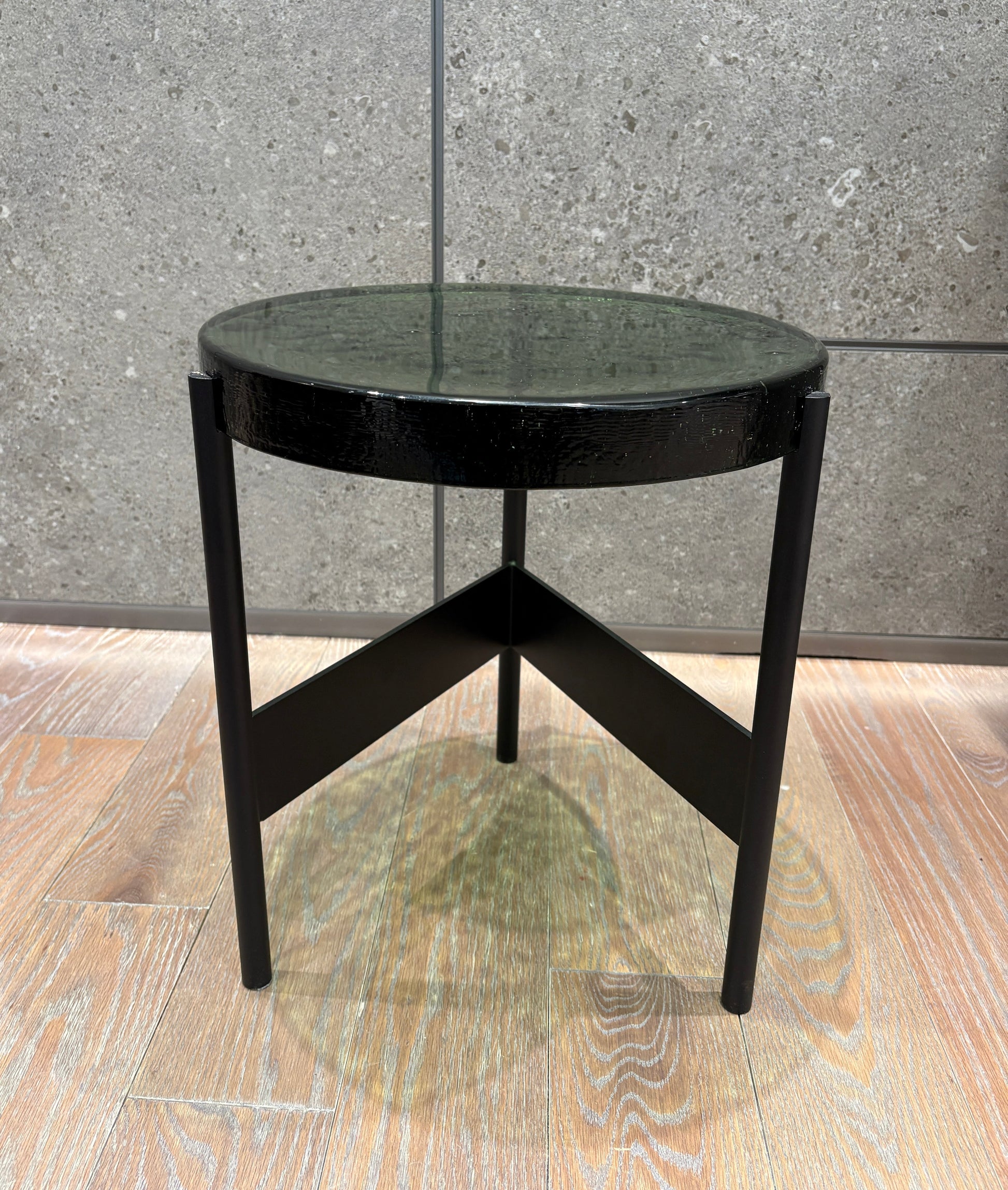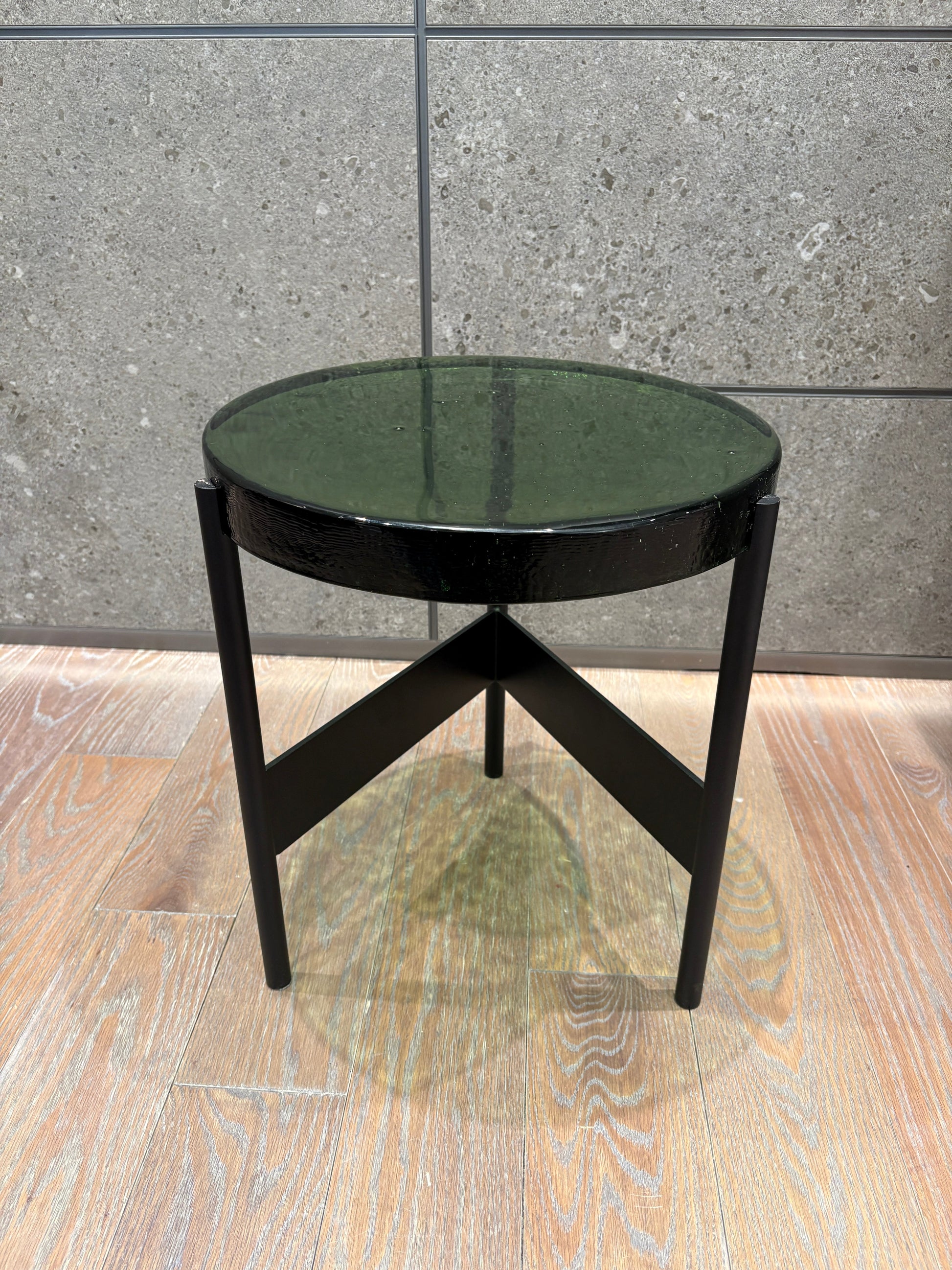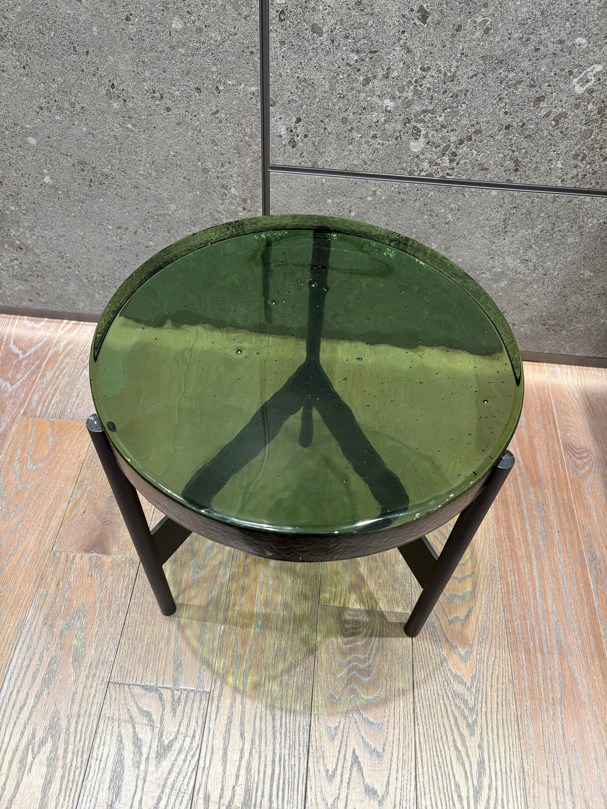 The Floor Sample Alwa Two Side Table brings traditional craftsmanship with unique glass choices, color differences, and natural bubbles. The molten-glass surface features a striking texture that is both visually appealing and practical, ideal for display or daily use. Pulpo’s global commitment to ceramics, stone, and glass is showcased through their "carte blanche" philosophy, which celebrates creative freedom.