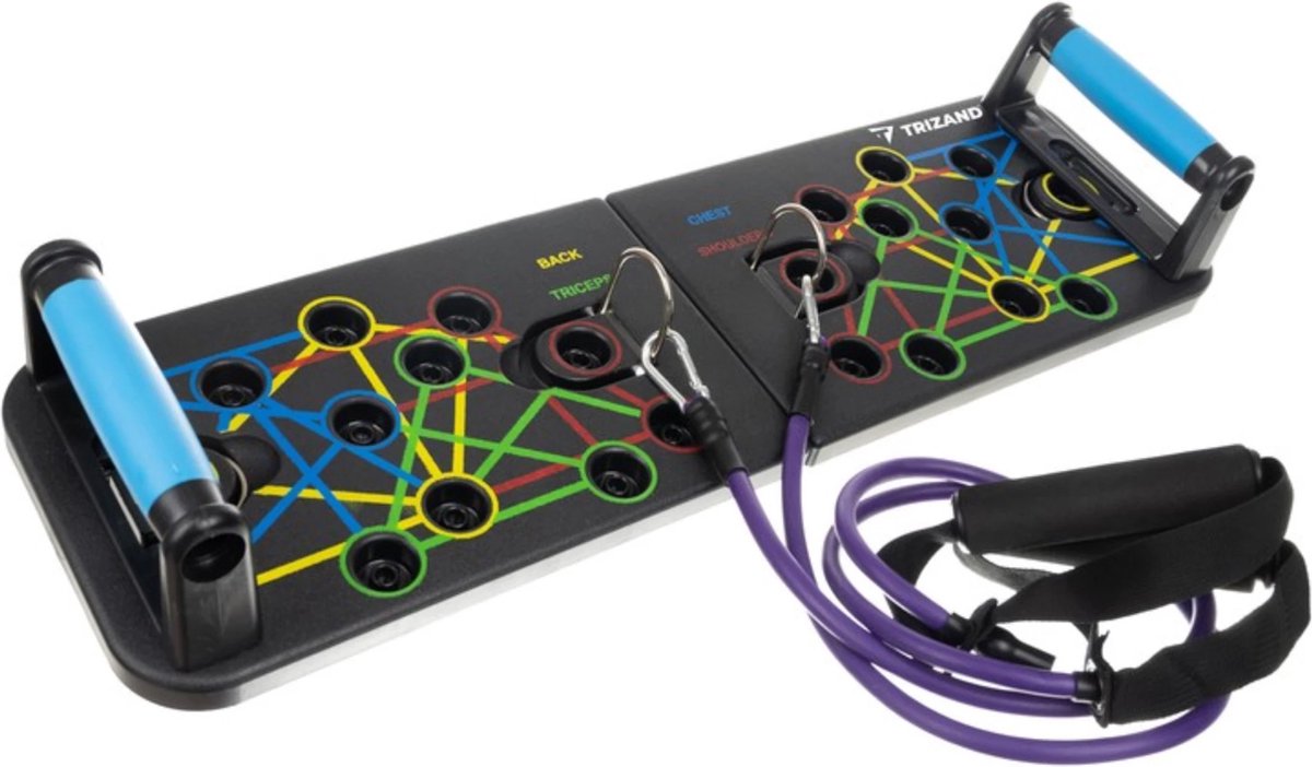 Train je lichaam overal met ons multifunctionele oefenbord met push-up handgrepen en elastische koorden