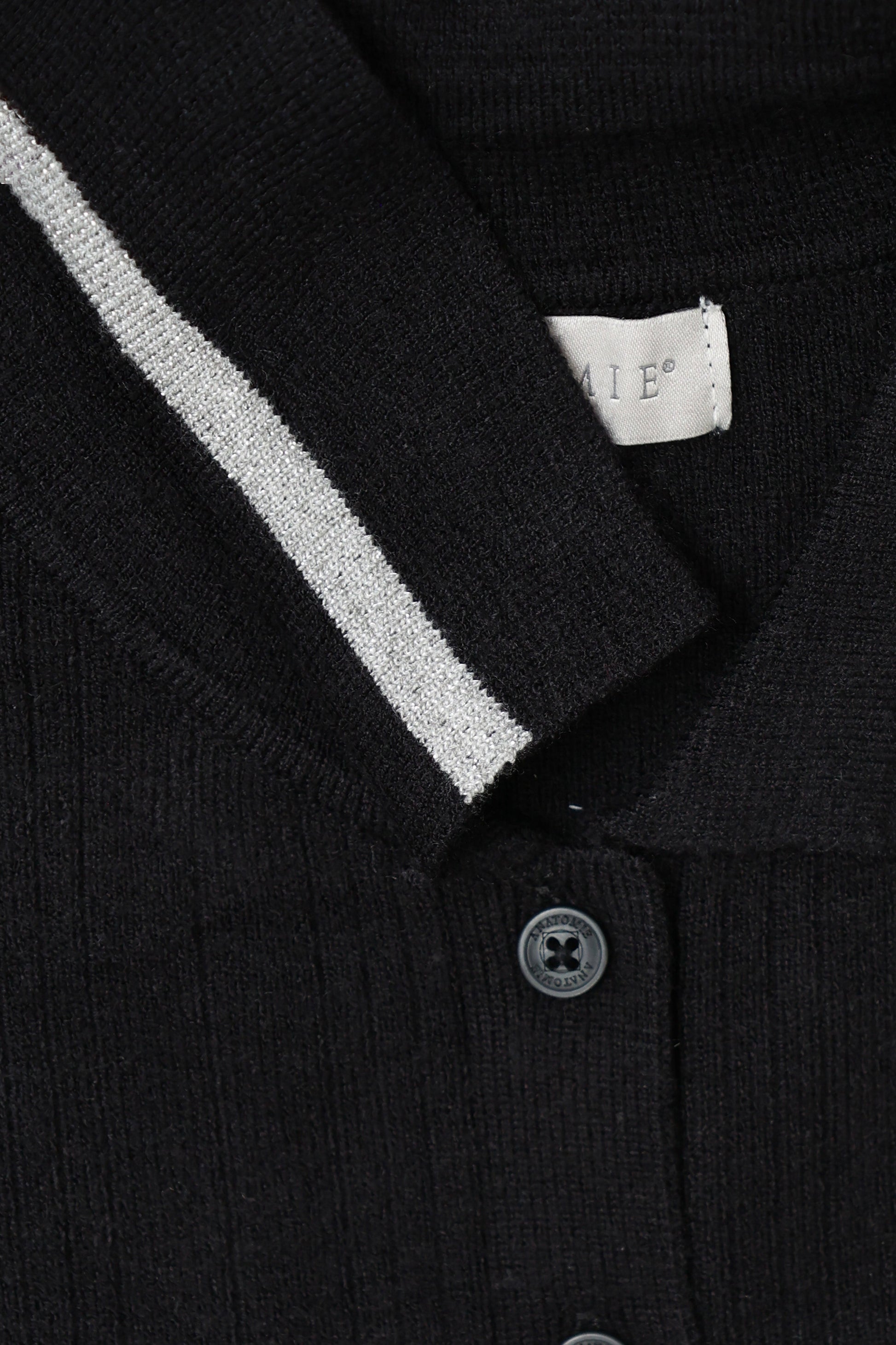 - Ribbed Sweater Knit, Silver Stripe underneath Collar